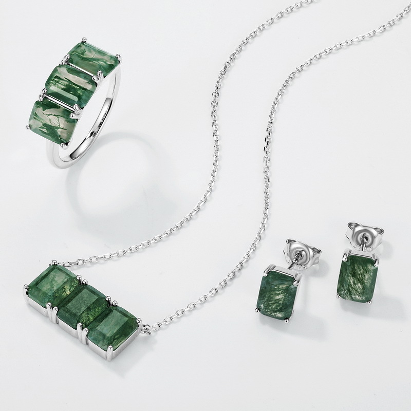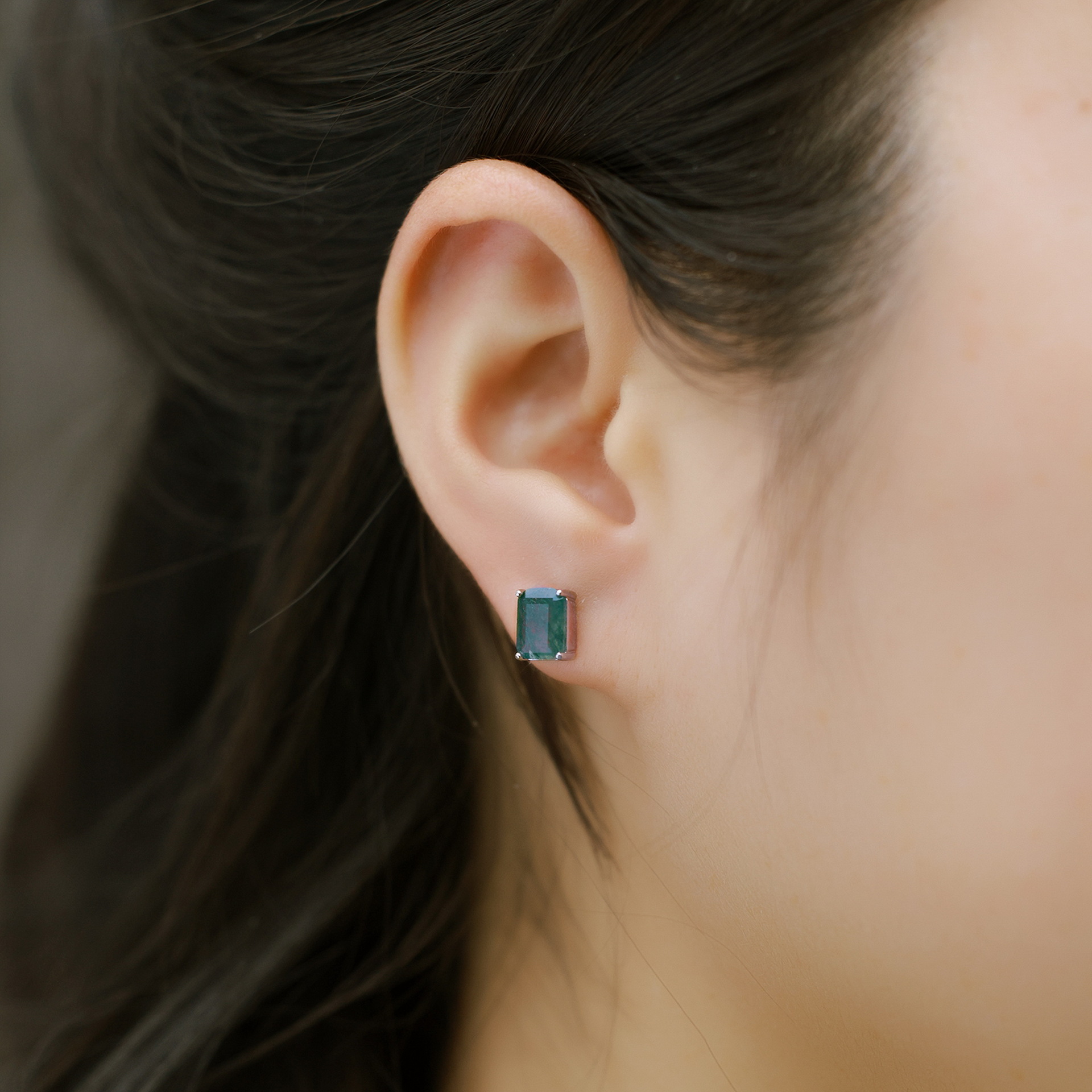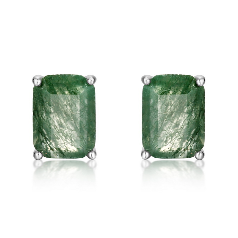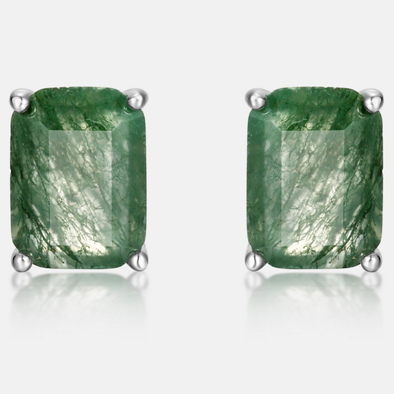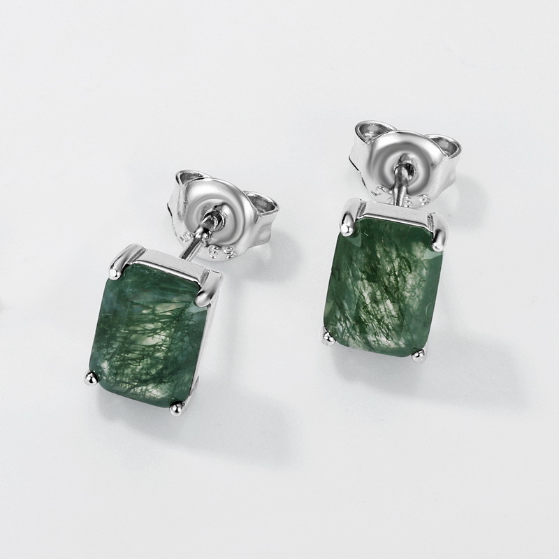 فضة 925 مسمار حلق, مع موس العقيق, نمط هندسي, البلاتين مطلي, مجوهرات الموضة & للمرأة, 6x8mm, تباع بواسطة زوج