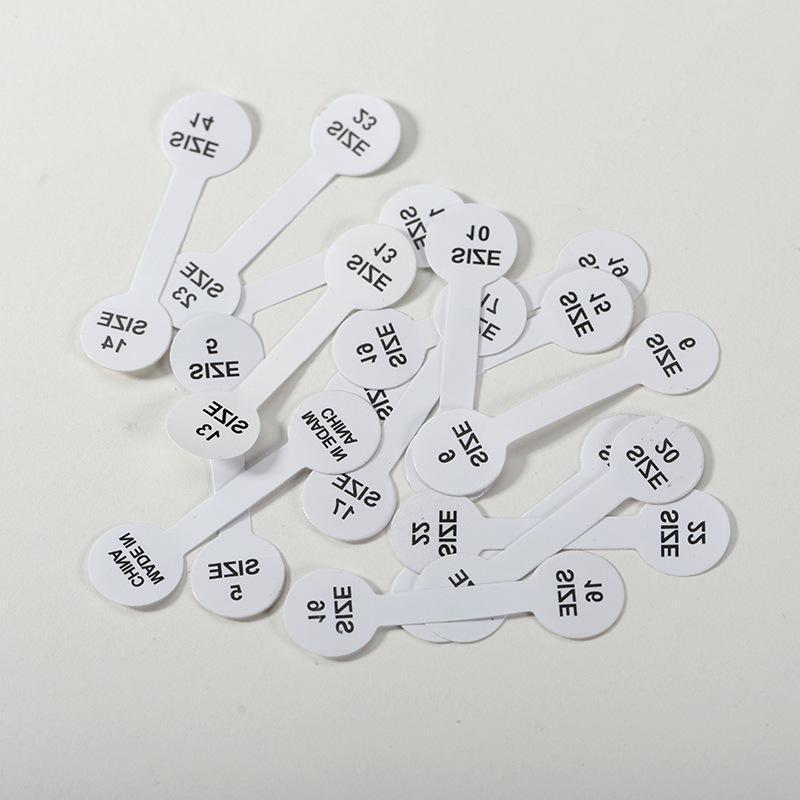 البلاستيك PVC علامة حجم الحلقة, مع لاصق + ملصق, جولة, الطباعه, ديي & تصاميم مختلفة للاختيار, أبيض, 14x50mm, 1000أجهزة الكمبيوتر/حقيبة, تباع بواسطة حقيبة