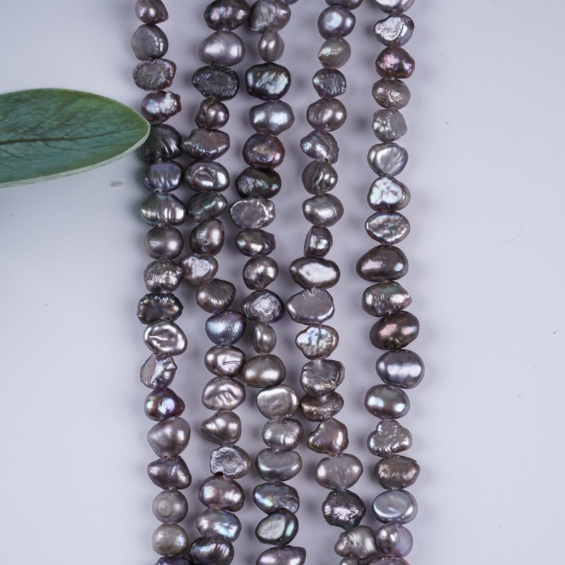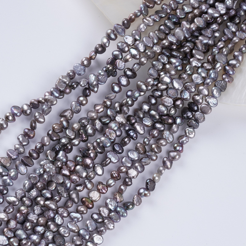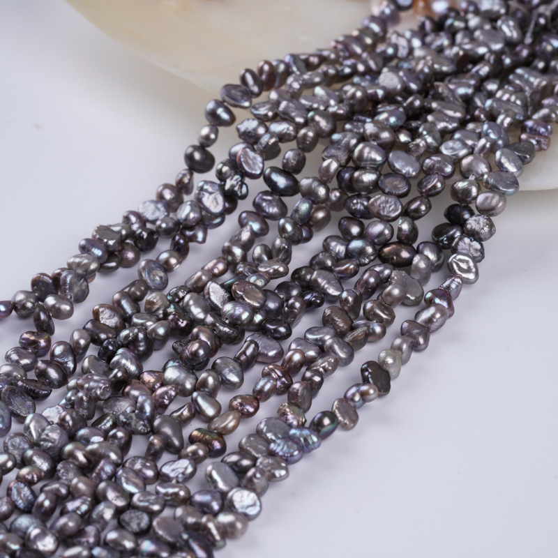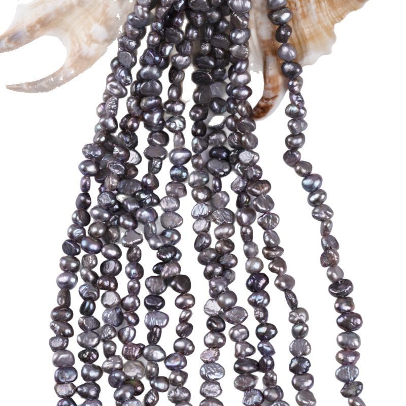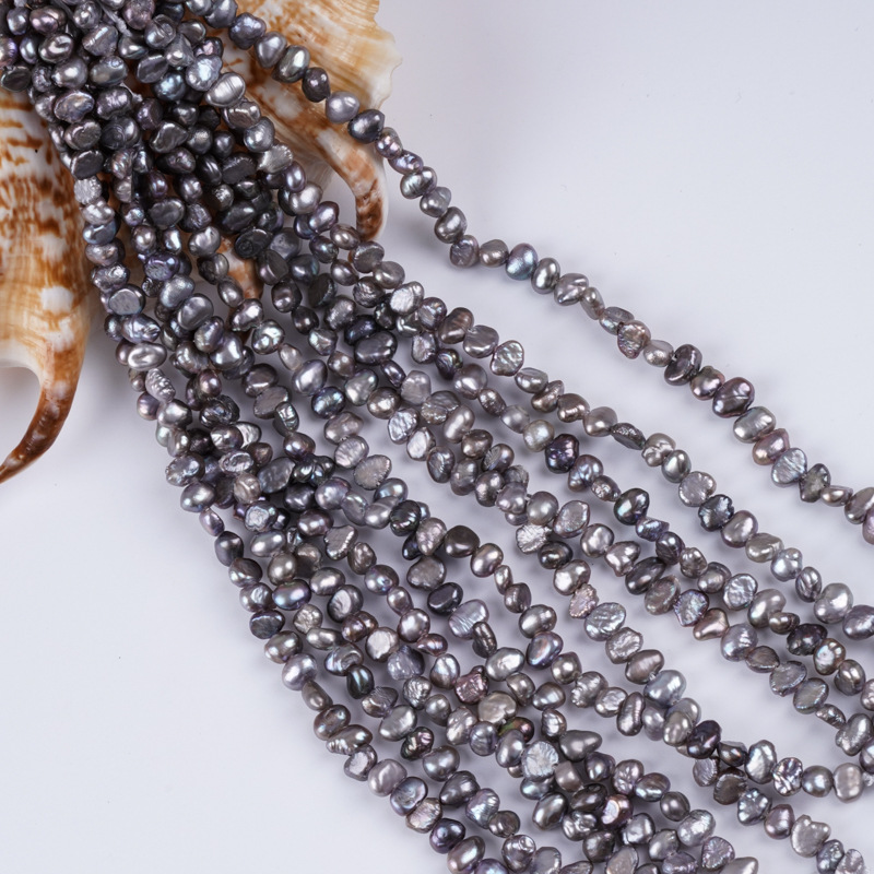 الخرز كيشي المياه العذبة مثقف, لؤلؤة المياه العذبة, ديي, رمادي, 4-5mm, تباع لكل 18 حبلا