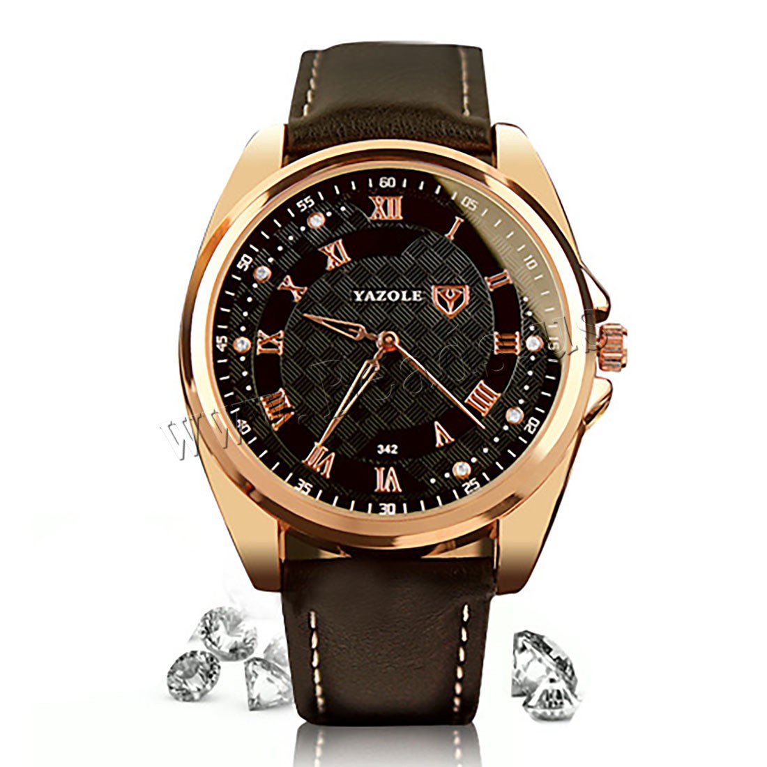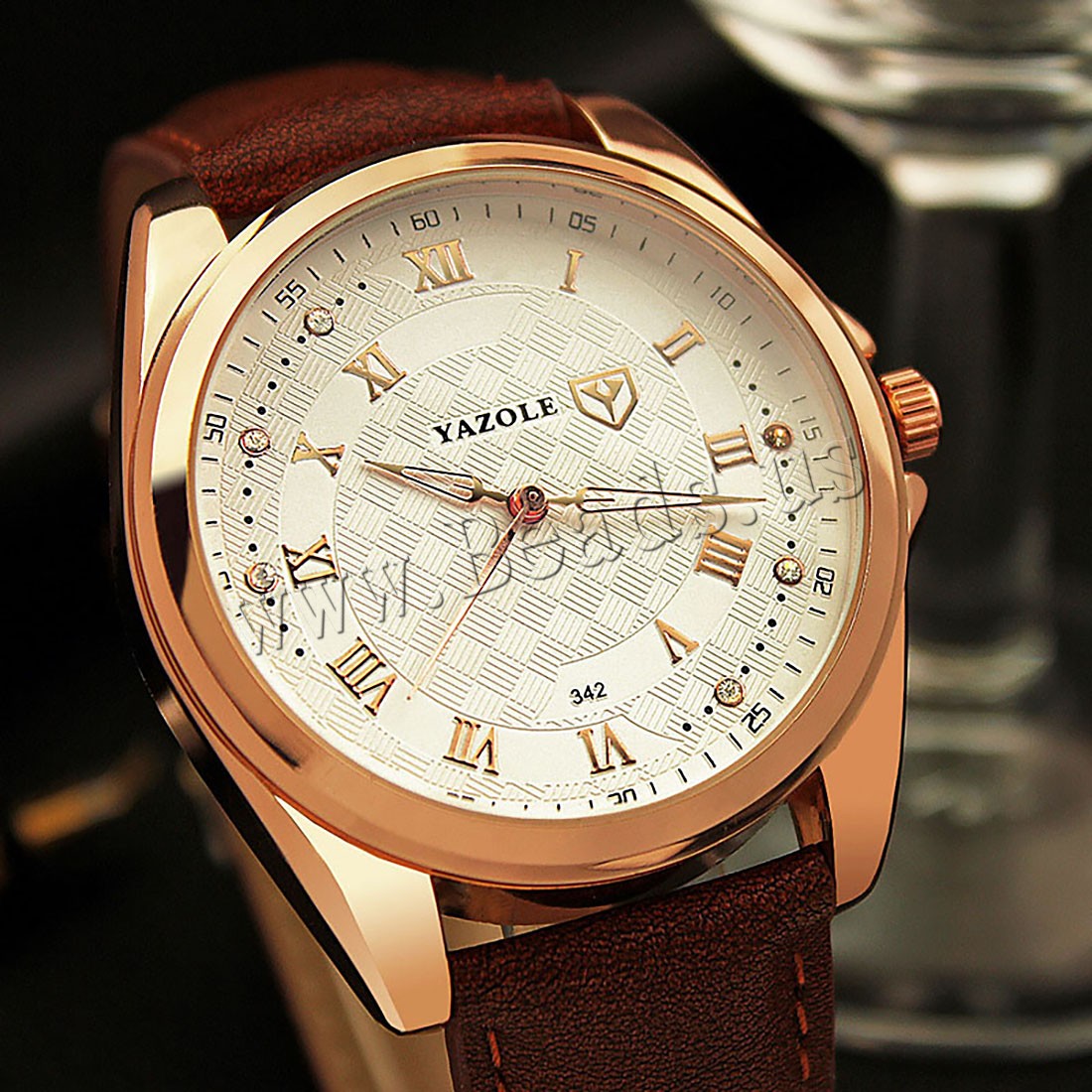 Yazole® رجال مجوهرات ووتش, جلد البقر, مع زجاج & سبائك الزنك, مطلي, قابل للتعديل & للرجل & مينا & مع حجر الراين, المزيد من الألوان للاختيار, النيكل والرصاص والكادميوم الحرة, 40x10.80mm, طول تقريبا 9 بوصة, تباع بواسطة PC