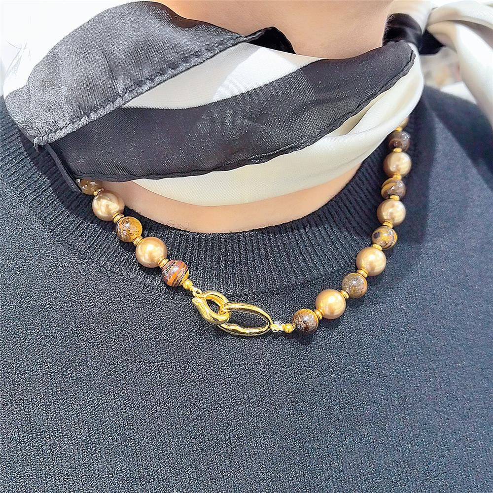 نمر المعلقات العين, عين النمر, مع الخرز الزجاجي & النحاس & 304 الفولاذ المقاوم للصدأ, مطلي, مجوهرات الموضة, الألوان المختلطة, طول 44 سم, تباع بواسطة PC