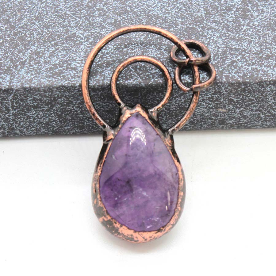 المعلقات الطبيعية كوارتز, سبائك الزنك, مع جمشت, مطلي, ديي, الألوان المختلطة, 47x26mm, تباع بواسطة PC