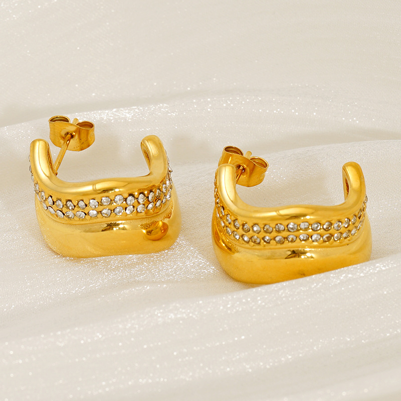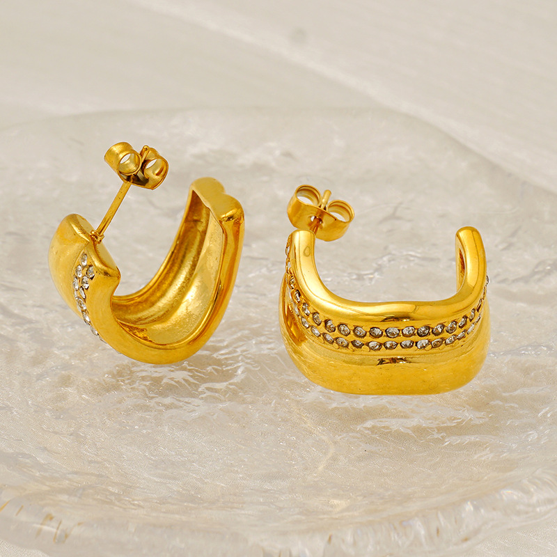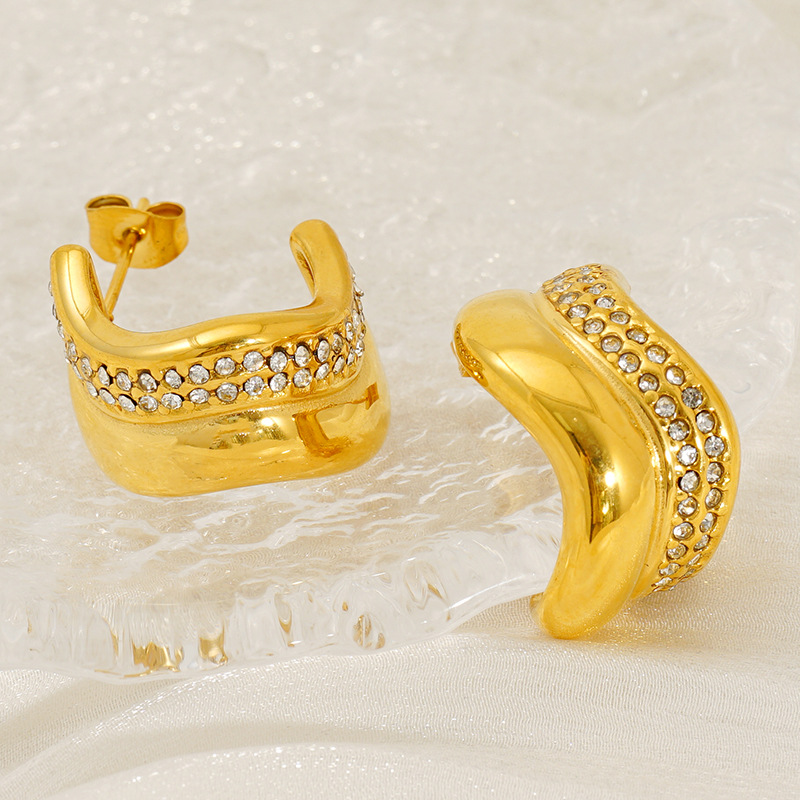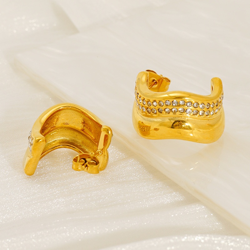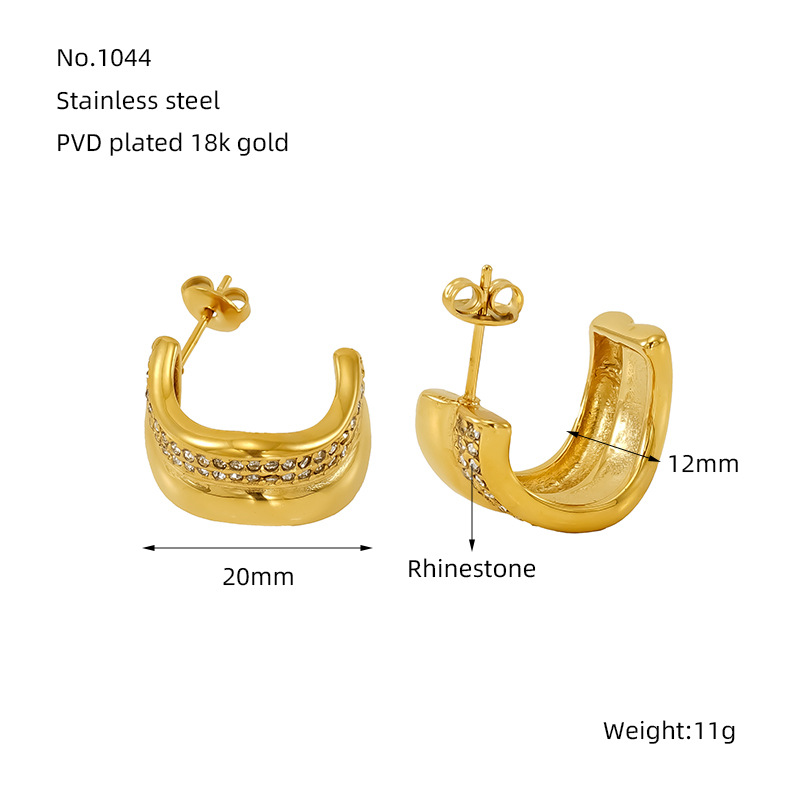 الفولاذ المقاوم للصدأ وأقراط, 304 الفولاذ المقاوم للصدأ, 18K الذهب مطلي, مجوهرات الموضة & للمرأة & مع حجر الراين, تباع بواسطة زوج