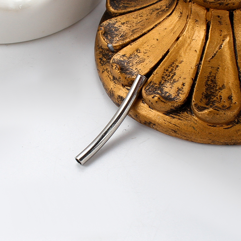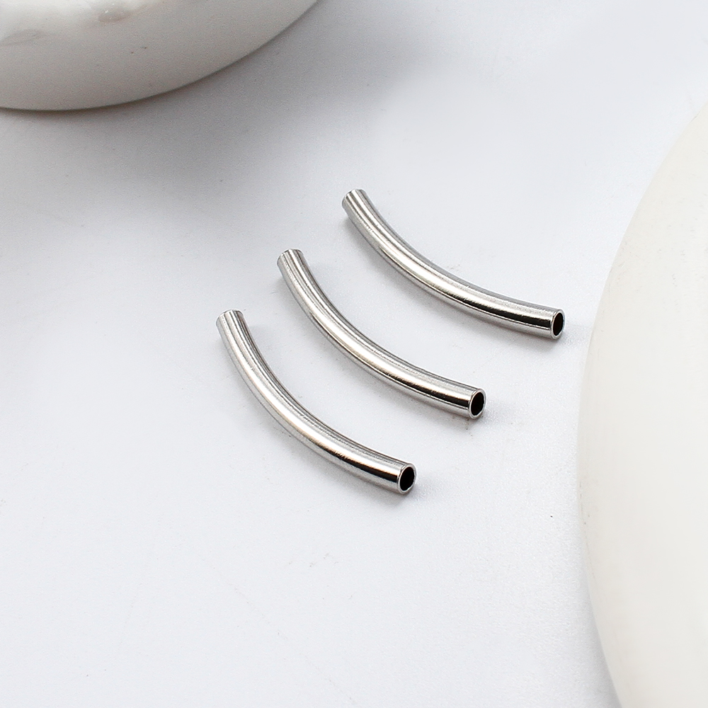 304 الفولاذ المقاوم للصدأ حبات أنبوب منحني, لون الفضة مطلي, ديي, فضة, 30.10x3.32x4.15mm, تباع بواسطة PC