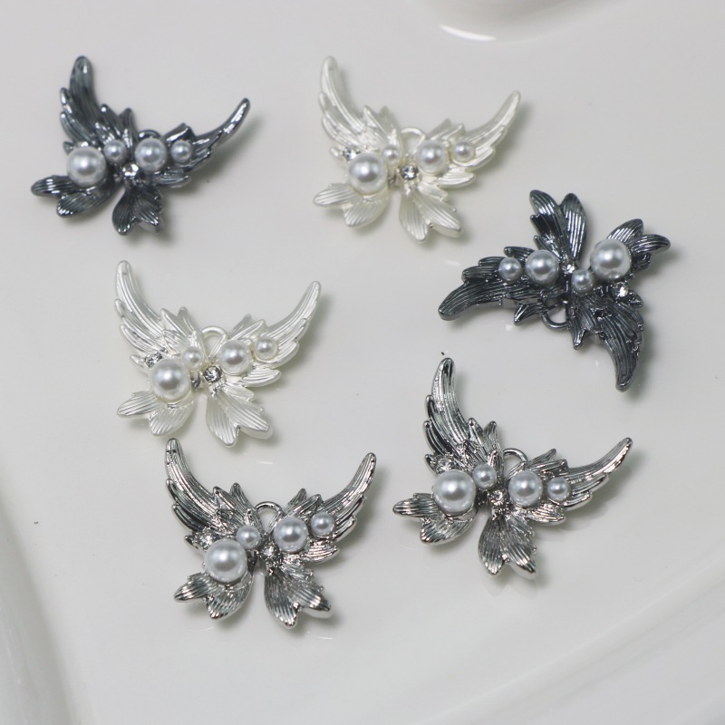 سبائك الزنك المعلقات الحيوان, مع لؤلؤة البلاستيك, فراشة, مطلي, ديي & مع حجر الراين, المزيد من الألوان للاختيار, تباع بواسطة PC