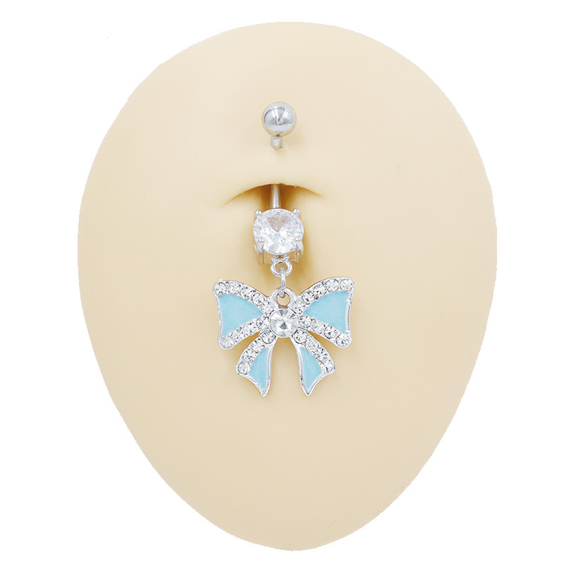 304 Stainless Steel Piercing do pupíku, s Zinek, Bowknot, á, unisex & smalt & s drahokamu, více barev na výběr, Prodáno By PC