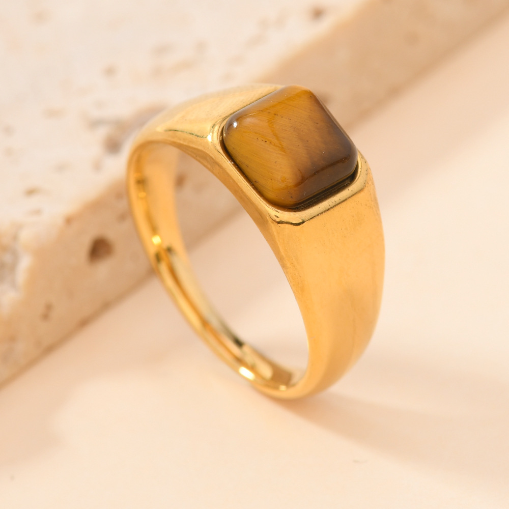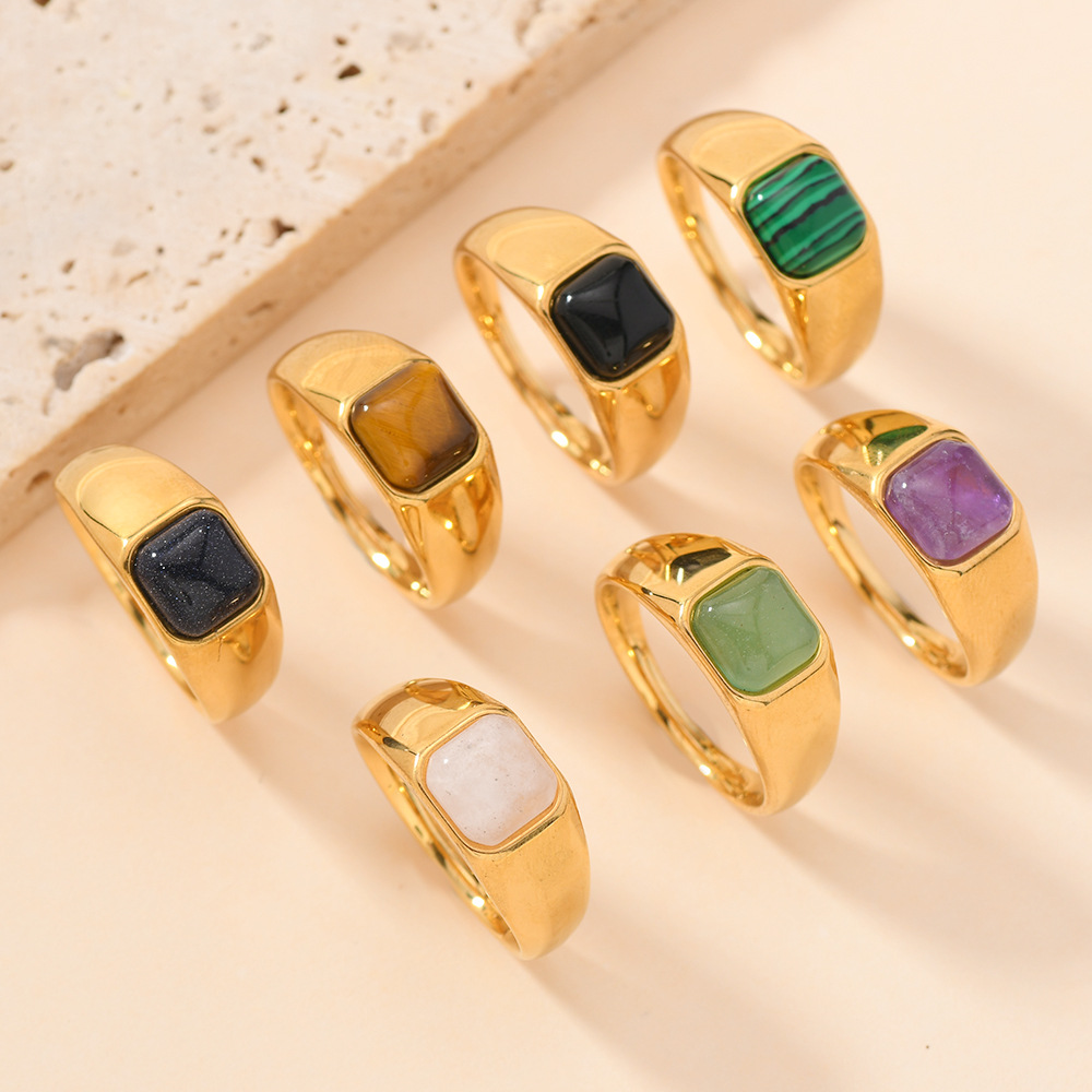 Gemstone prst prsten, 304 Stainless Steel, s Přírodní kámen, barva pozlacený, módní šperky & různé materiály pro výběr & unisex, více barev na výběr, Prodáno By PC