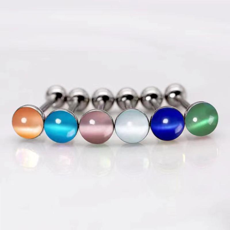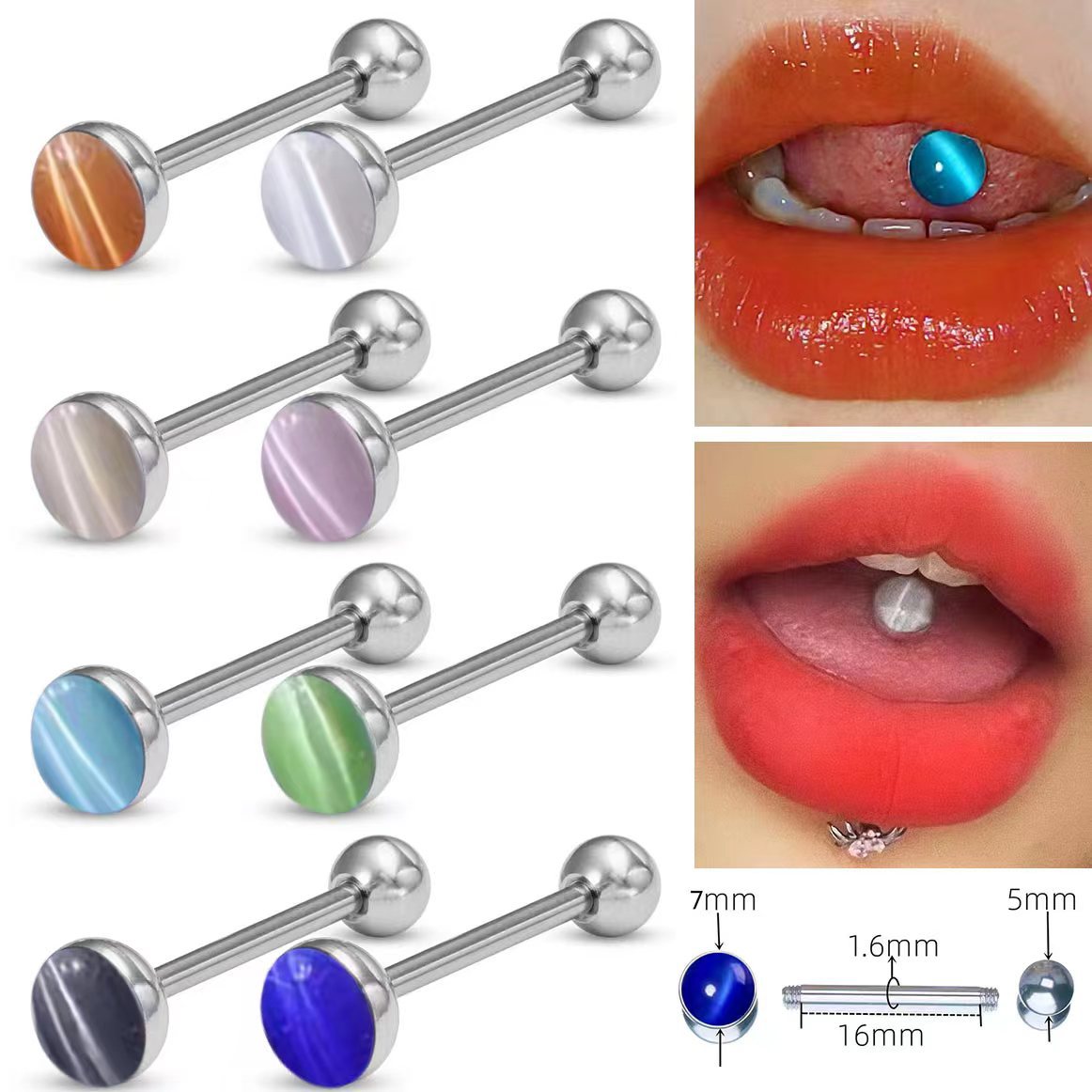 304 Stainless Steel jazyk kroužek, s Kočky Eye, unisex & smalt, více barev na výběr, Prodáno By PC