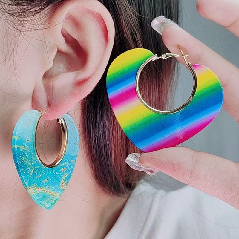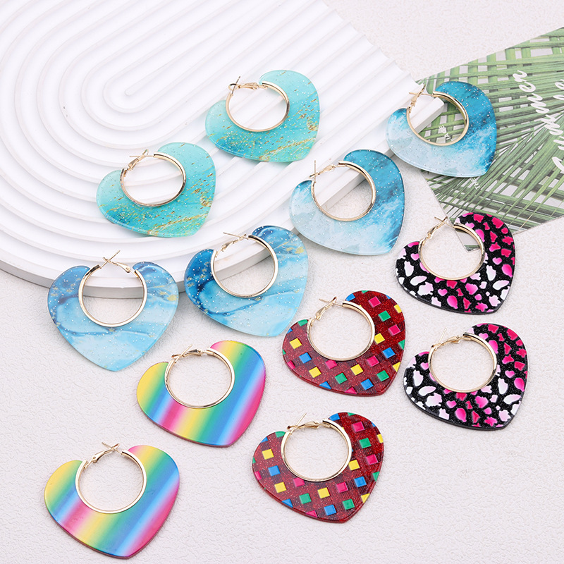 Akryl Drop náušnice, Srdce, tisk, módní šperky & pro ženy & dutý, více barev na výběr, 60x50mm, Prodáno By Pair