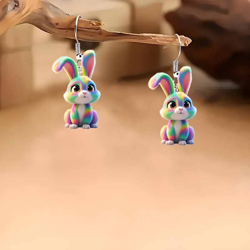 Akryl Drop náušnice, Králík, Tisk, různé styly pro výběr & pro ženy, multi-barevný, Prodáno By Pair