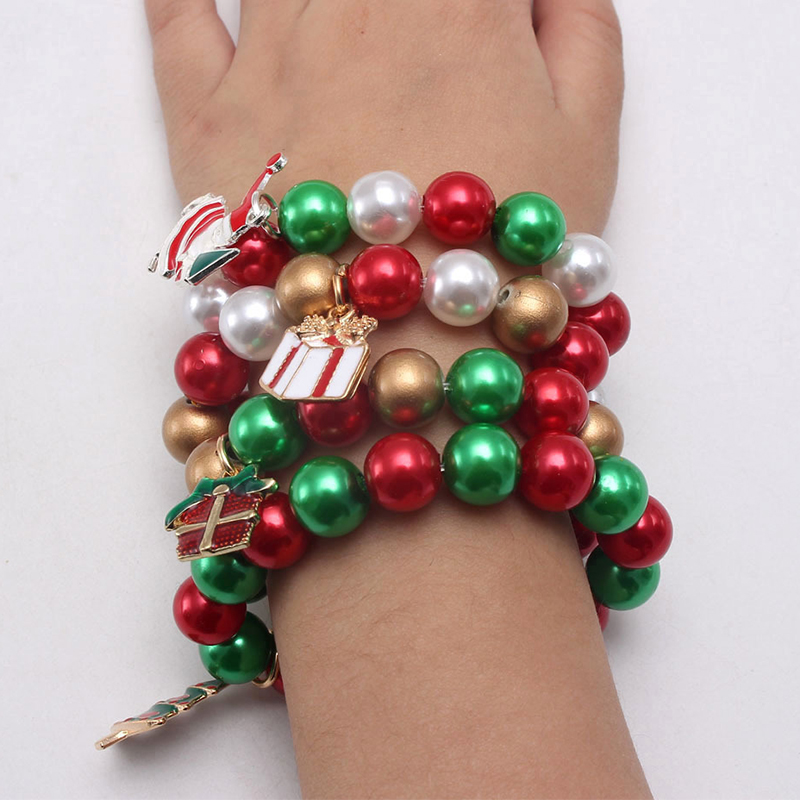 Akryl Náramek, s ABS plast pearl & Zinek, Vánoční design & Děvče & různé styly pro výběr & smalt & s drahokamu, Délka Cca 6.3 inch, Prodáno By PC