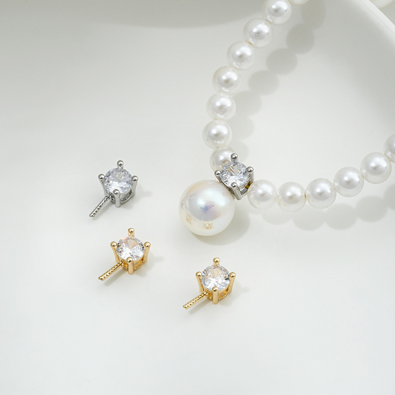1:14K gold single zirconium bead pin hollow holder 12:White gold single zirconium bead pin hollow holder 1