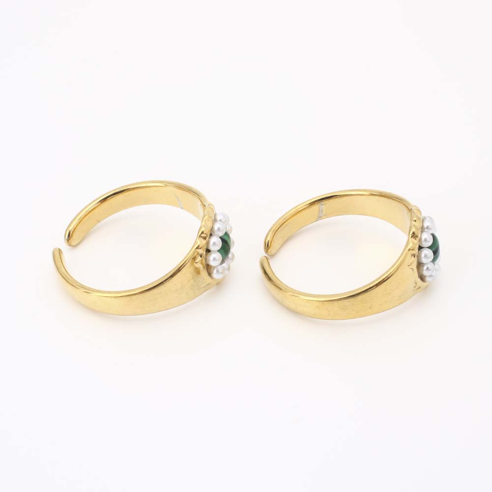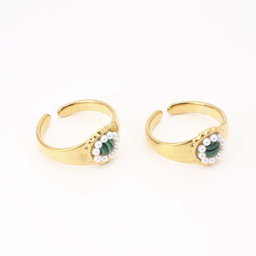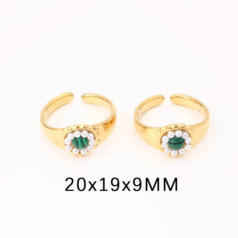 Prst prsten z nerezové oceli, 304 Stainless Steel, s Syntetický + Malachite & Plastové Pearl, módní šperky & pro ženy, zlatý, Inner diameter: 17mm, Prodáno By PC