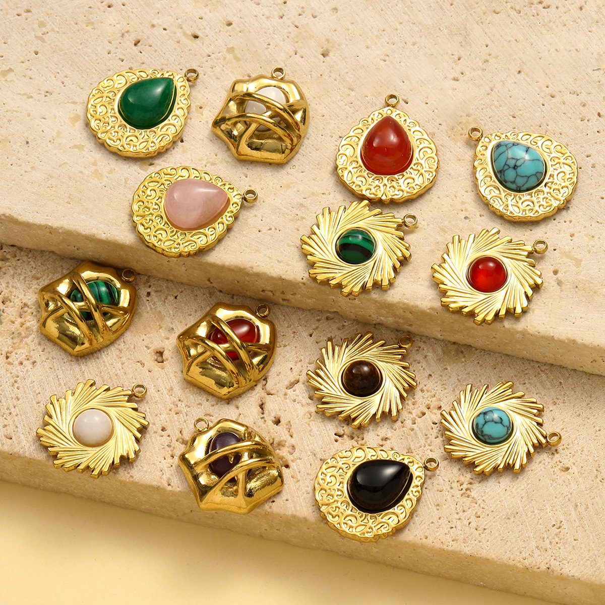 Gemstone Přívěsky Šperky, 304 Stainless Steel, s Drahokam, Jiný tvar pro výběr & DIY, více barev na výběr, 3PC/Bag, Prodáno By Bag