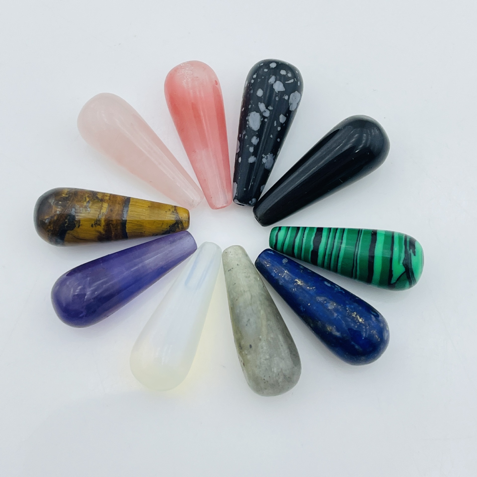 1:Obsidian [8*21mm]2:Alabaster [8*21mm]3:Tiger eye stone [8*21mm]4:Opal [8*21mm]5:White flash [8*21mm]6:Malachite [8*21mm]7:Amethyst [8*21mm]8:Watermelon red [8*21mm]9:Rose quartz [8*21mm]10:Lapis gold【8*21mm】