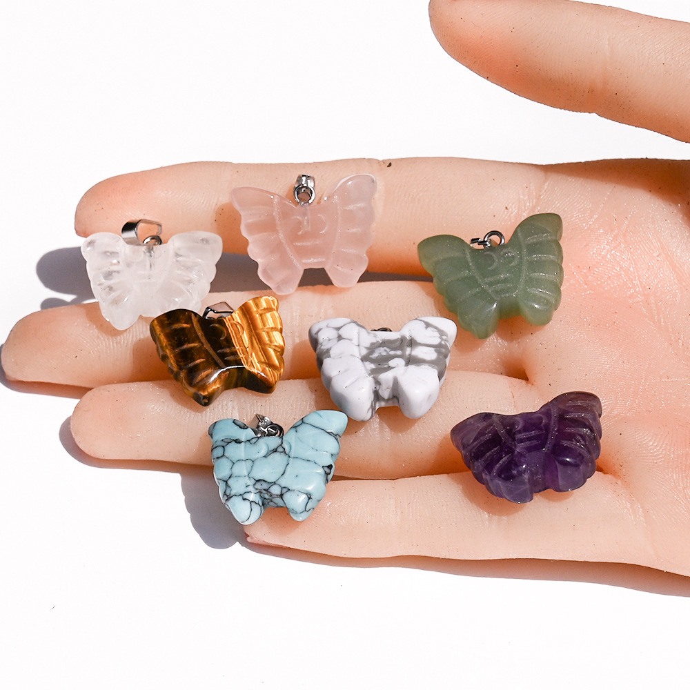 Gemstone Přívěsky Šperky, Přírodní kámen, Motýl, DIY & různé materiály pro výběr, více barev na výběr, nikl, olovo a kadmium zdarma, 18x22x6mm, Prodáno By PC