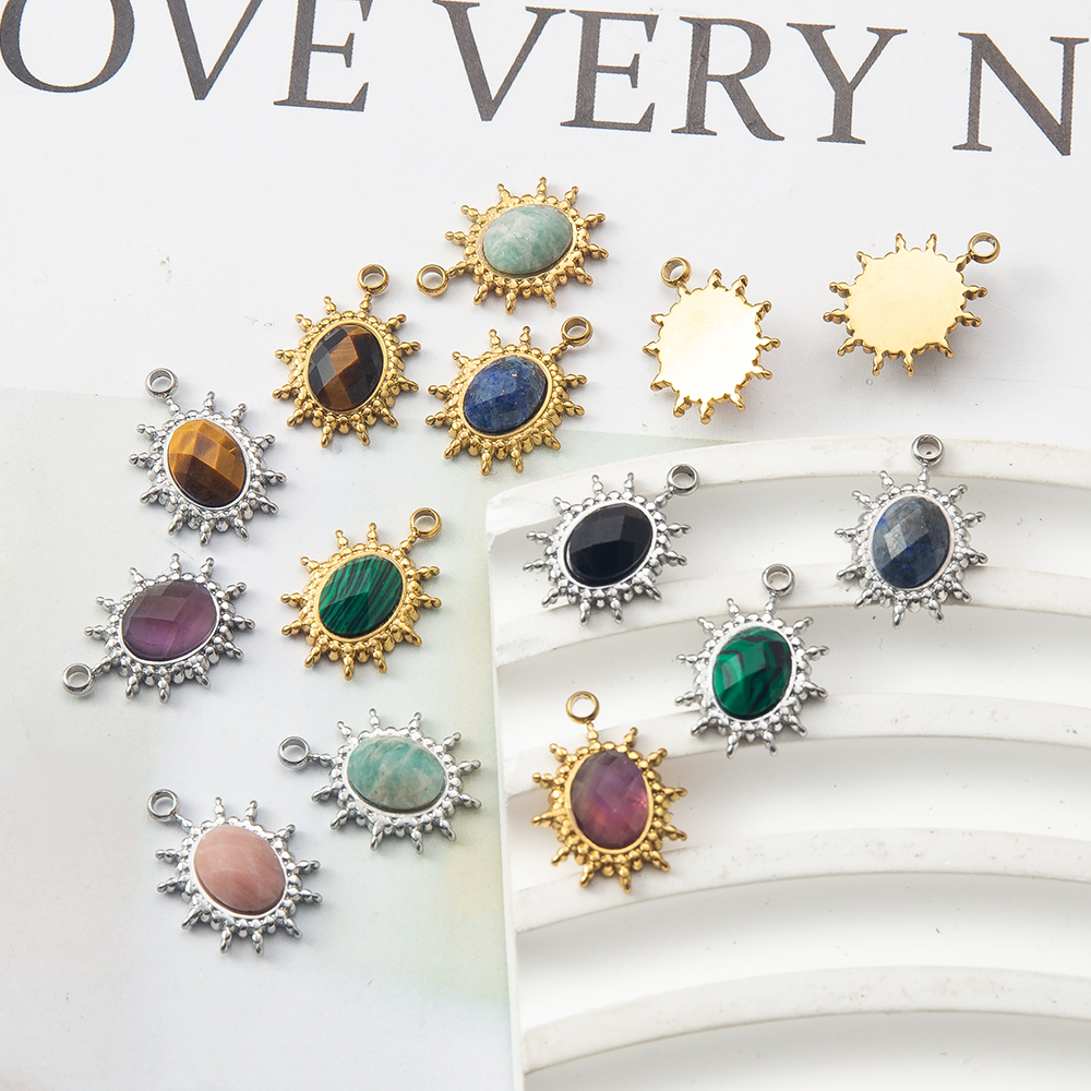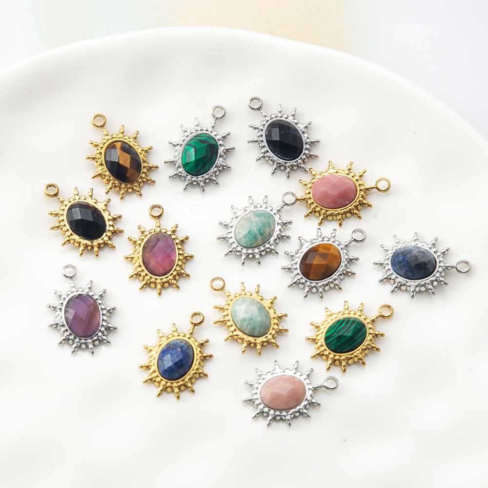 Gemstone Přívěsky Šperky, Drahokam, s 304 Stainless Steel, DIY, více barev na výběr, 13.30x4.90x18.30mm, Prodáno By PC