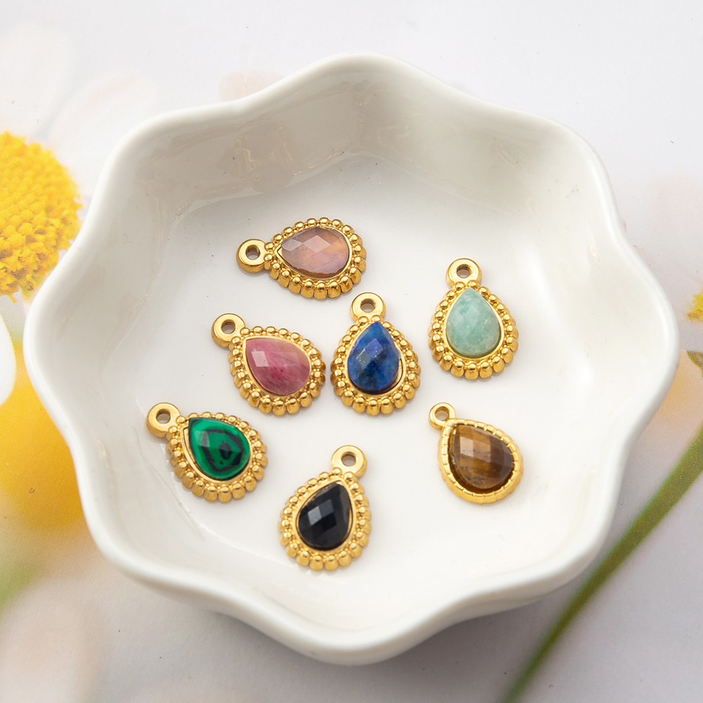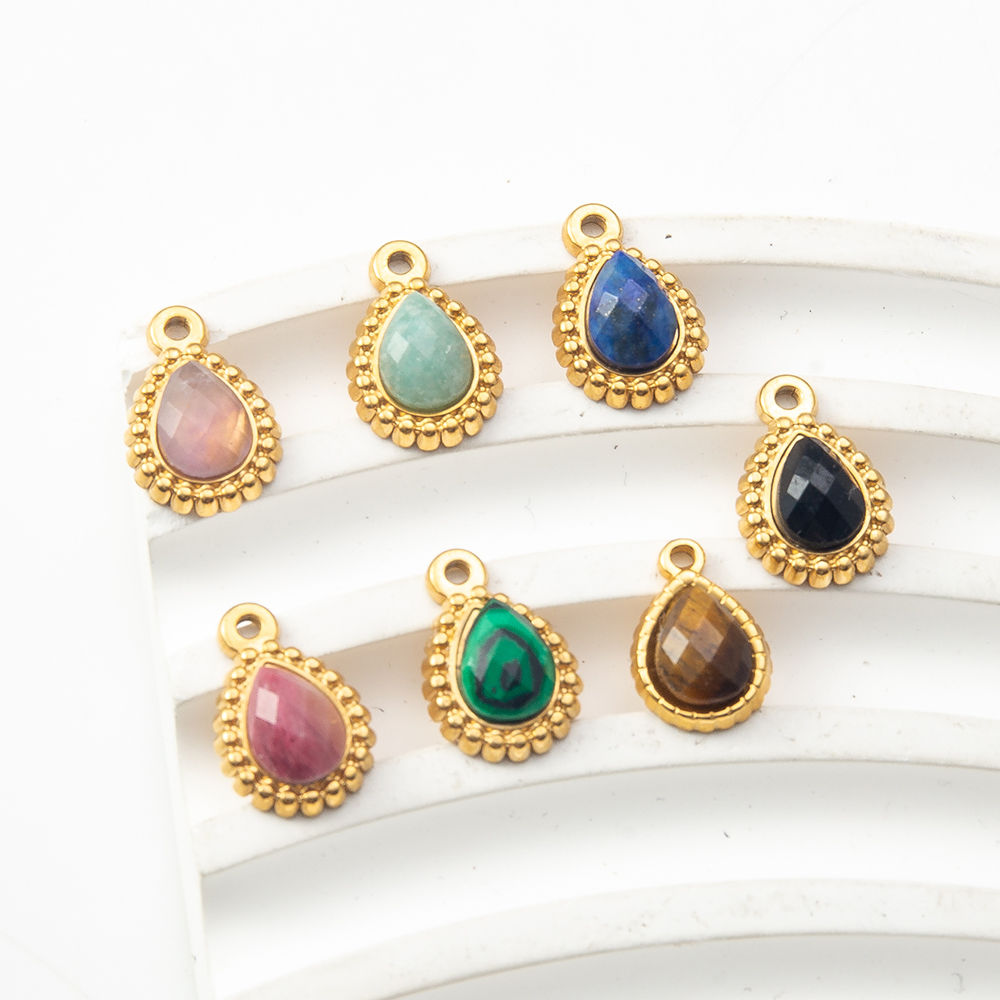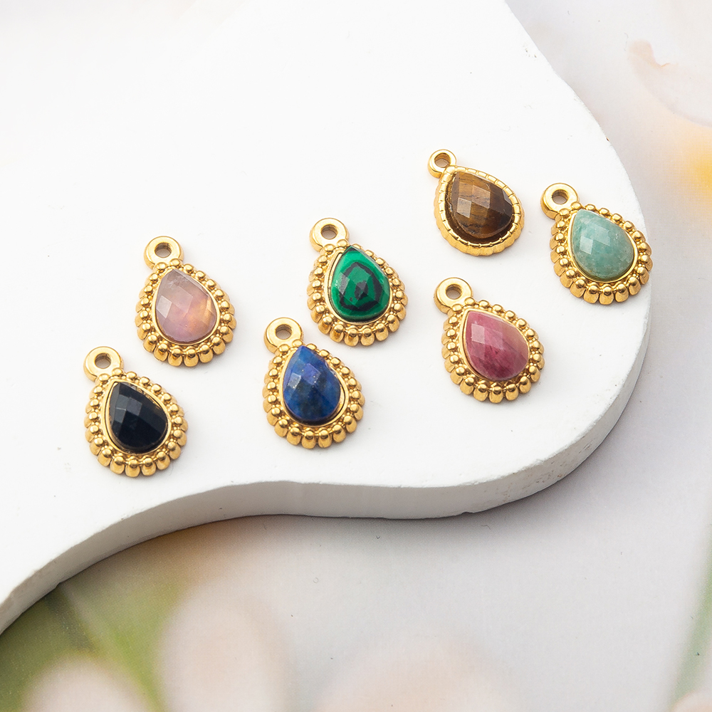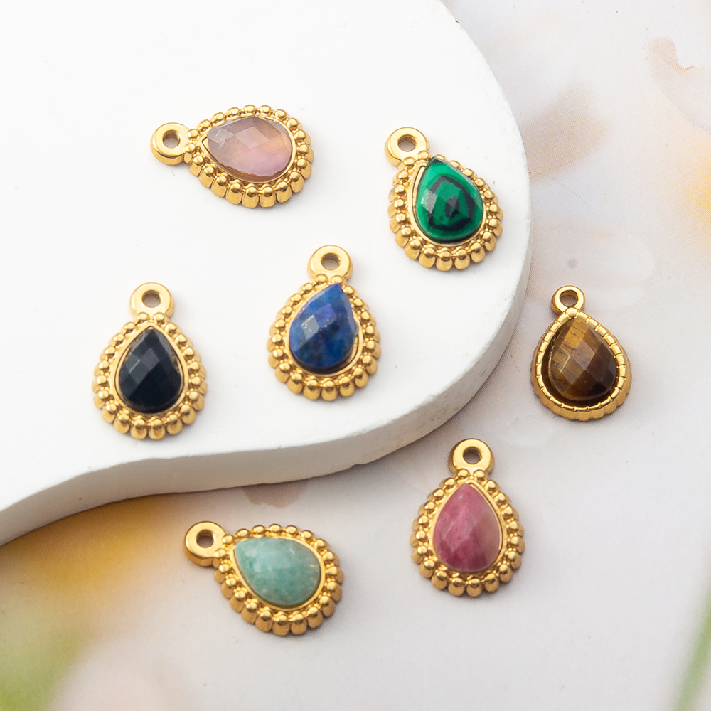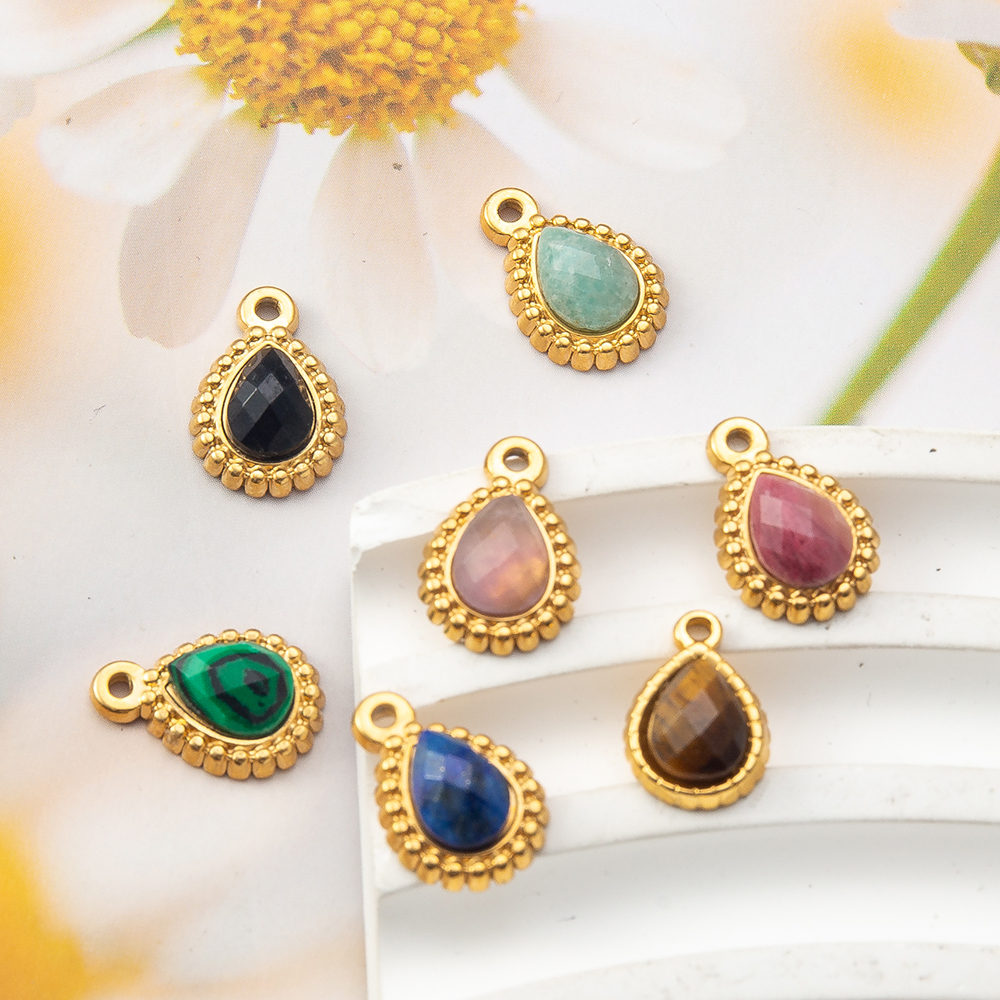 Gemstone Přívěsky Šperky, Přírodní kámen, s Zinek, Slza, barva pozlacený, DIY & různé materiály pro výběr, více barev na výběr, 9x11mm, Prodáno By PC