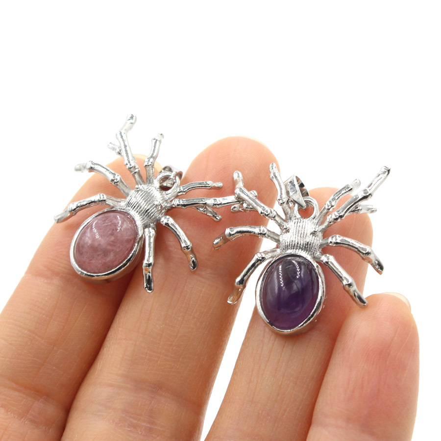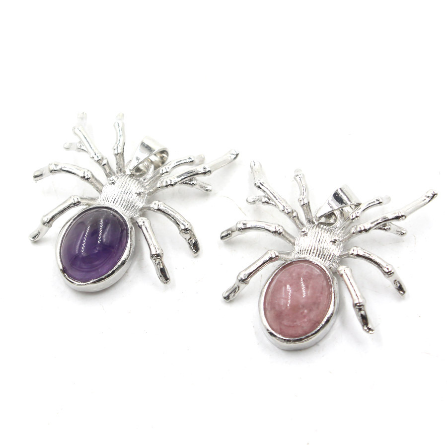 Gemstone Přívěsky Šperky, Zinek, s Přírodní kámen, Pavouk, á, DIY, více barev na výběr, nikl, olovo a kadmium zdarma, 25x25mm, Prodáno By PC
