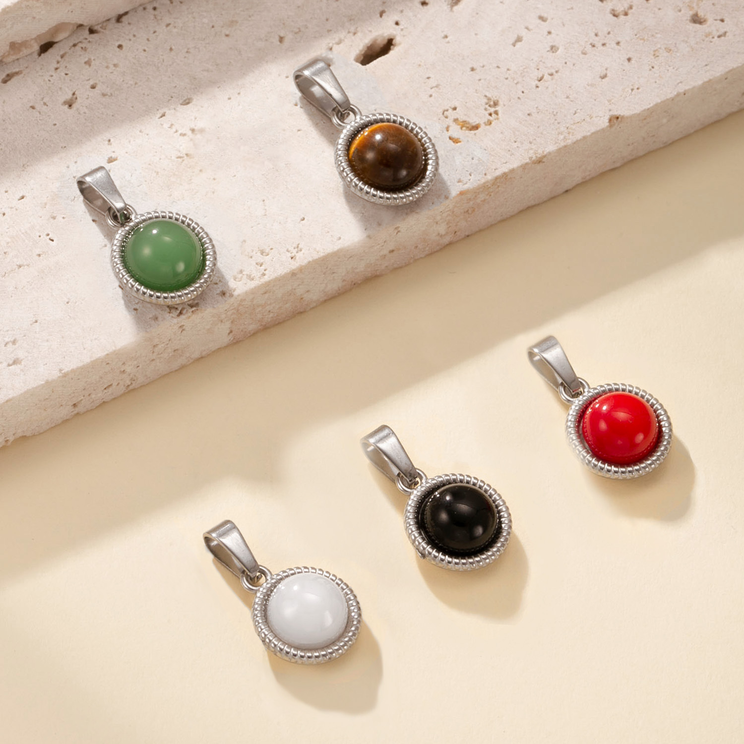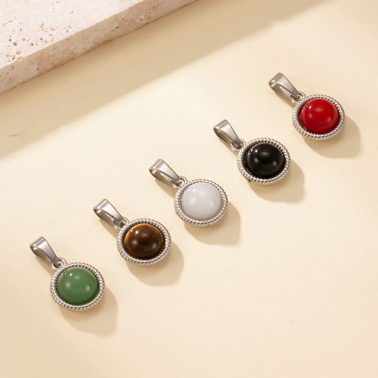 Gemstone Přívěsky Šperky, 304 Stainless Steel, s Přírodní kámen, Kolo, á, DIY & různé materiály pro výběr, více barev na výběr, Prodáno By PC
