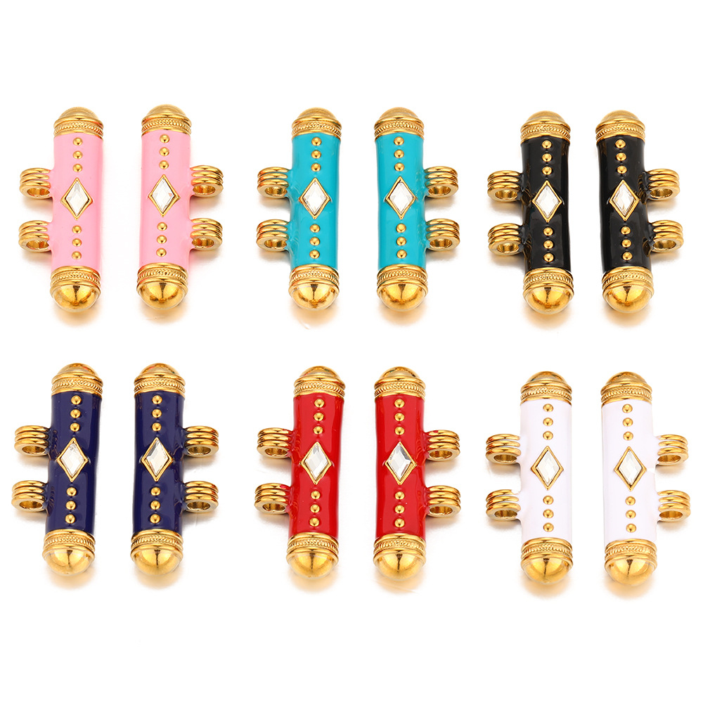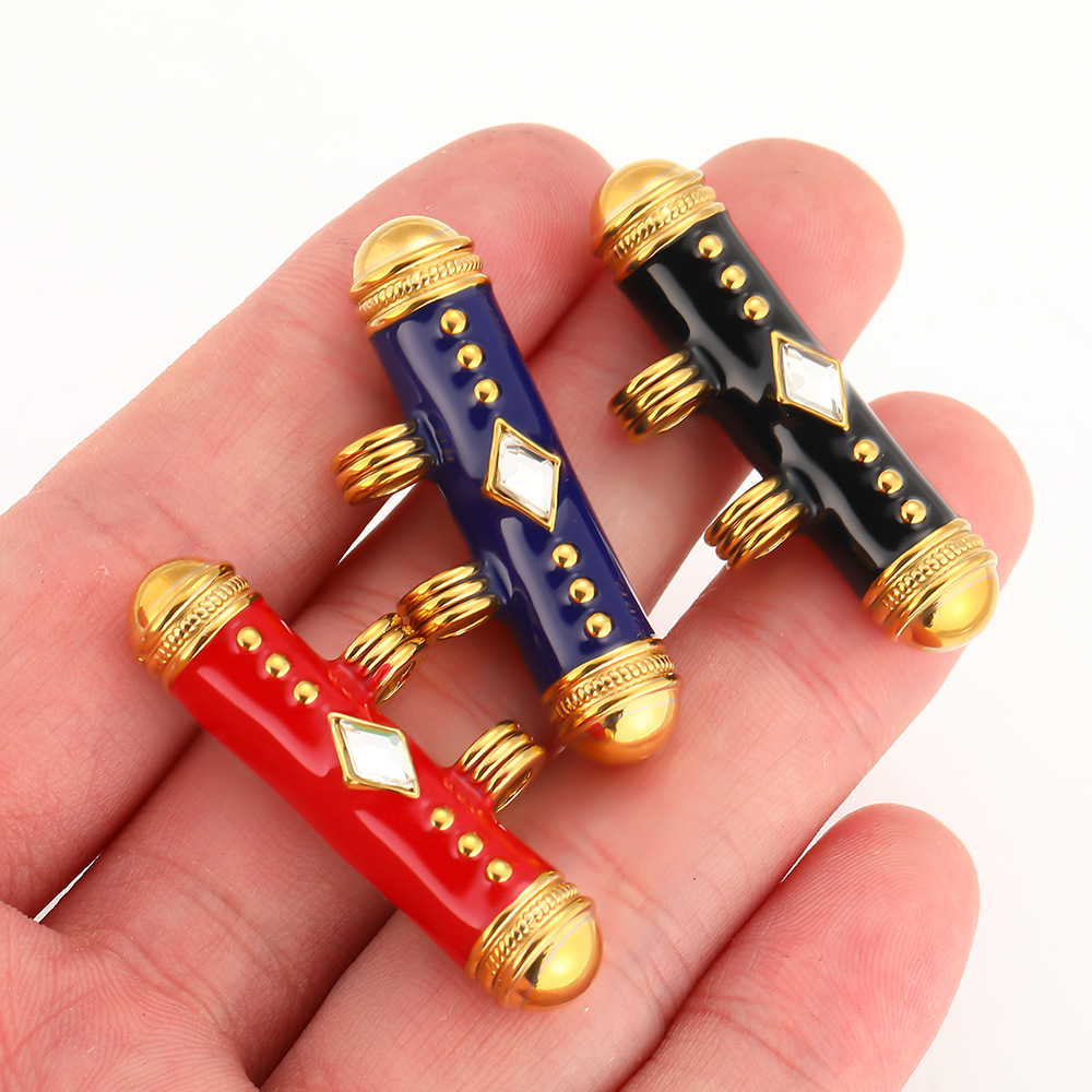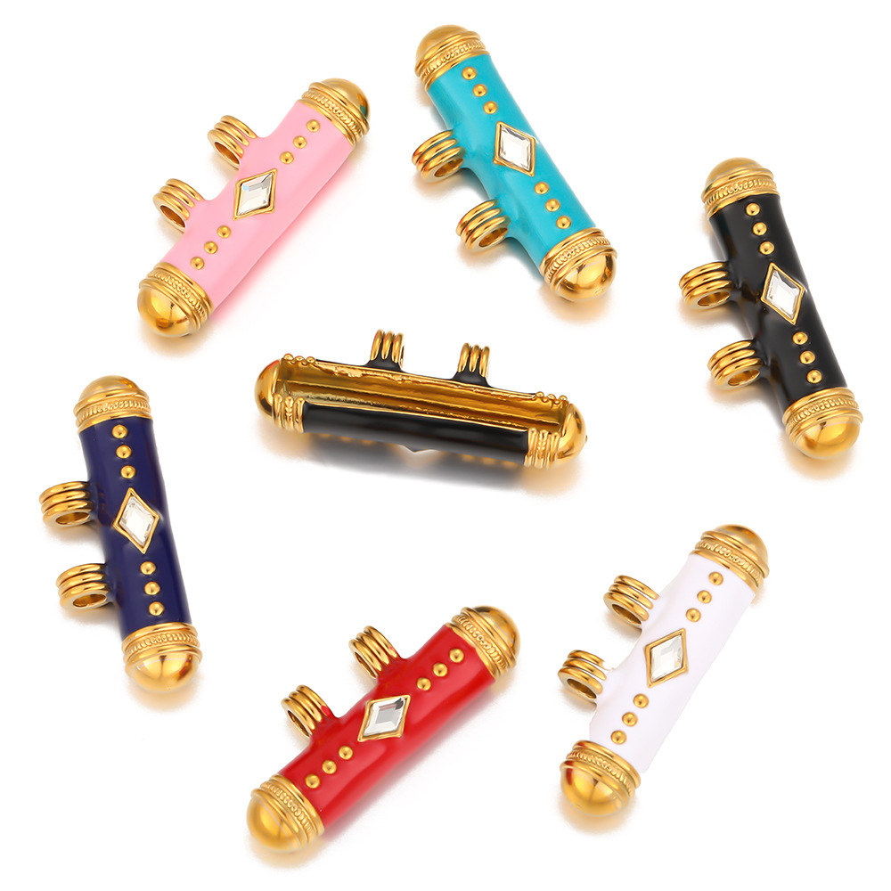 Nerezová ocel Šperky Přívěsky, 304 Stainless Steel, barva pozlacený, DIY & micro vydláždit kubické zirkony & smalt & double-hole, více barev na výběr, 5PC/Bag, Prodáno By Bag