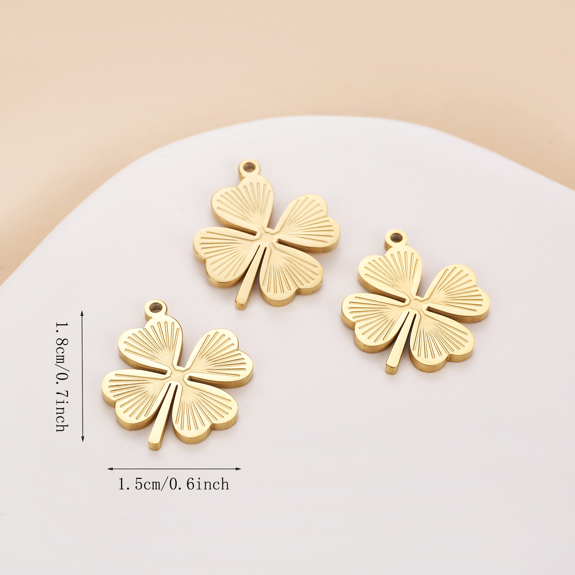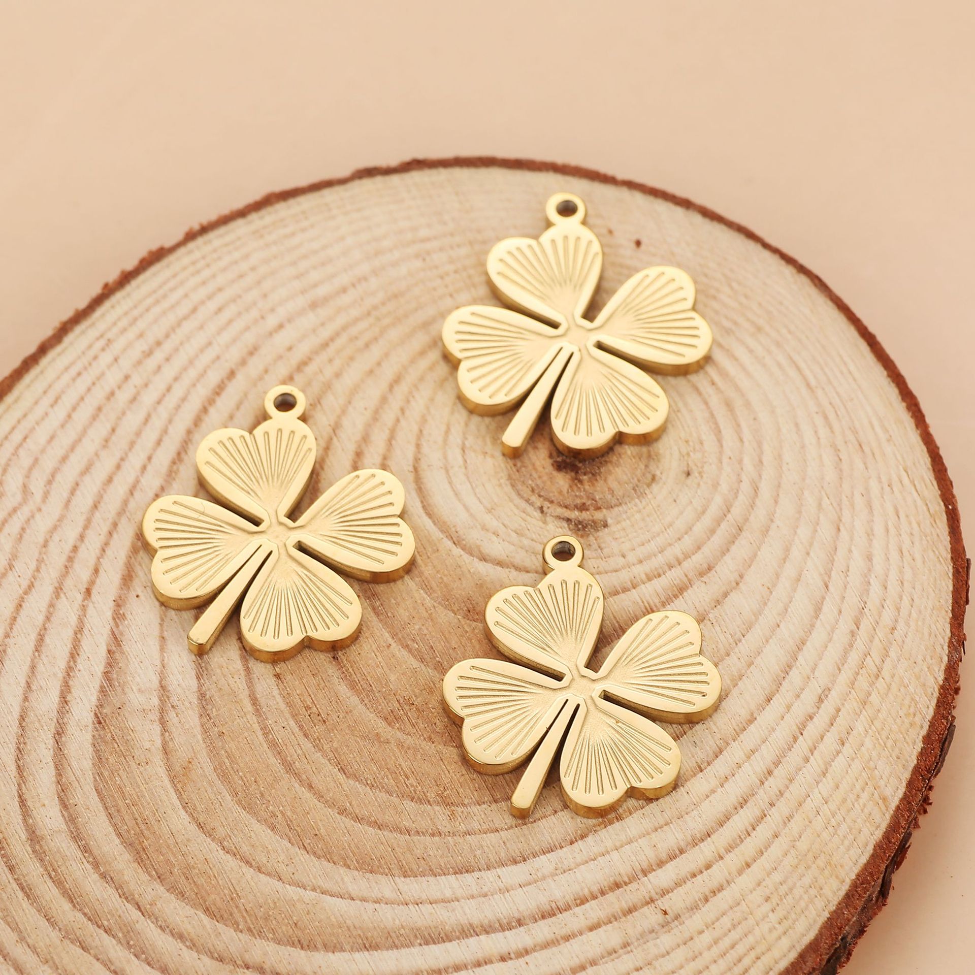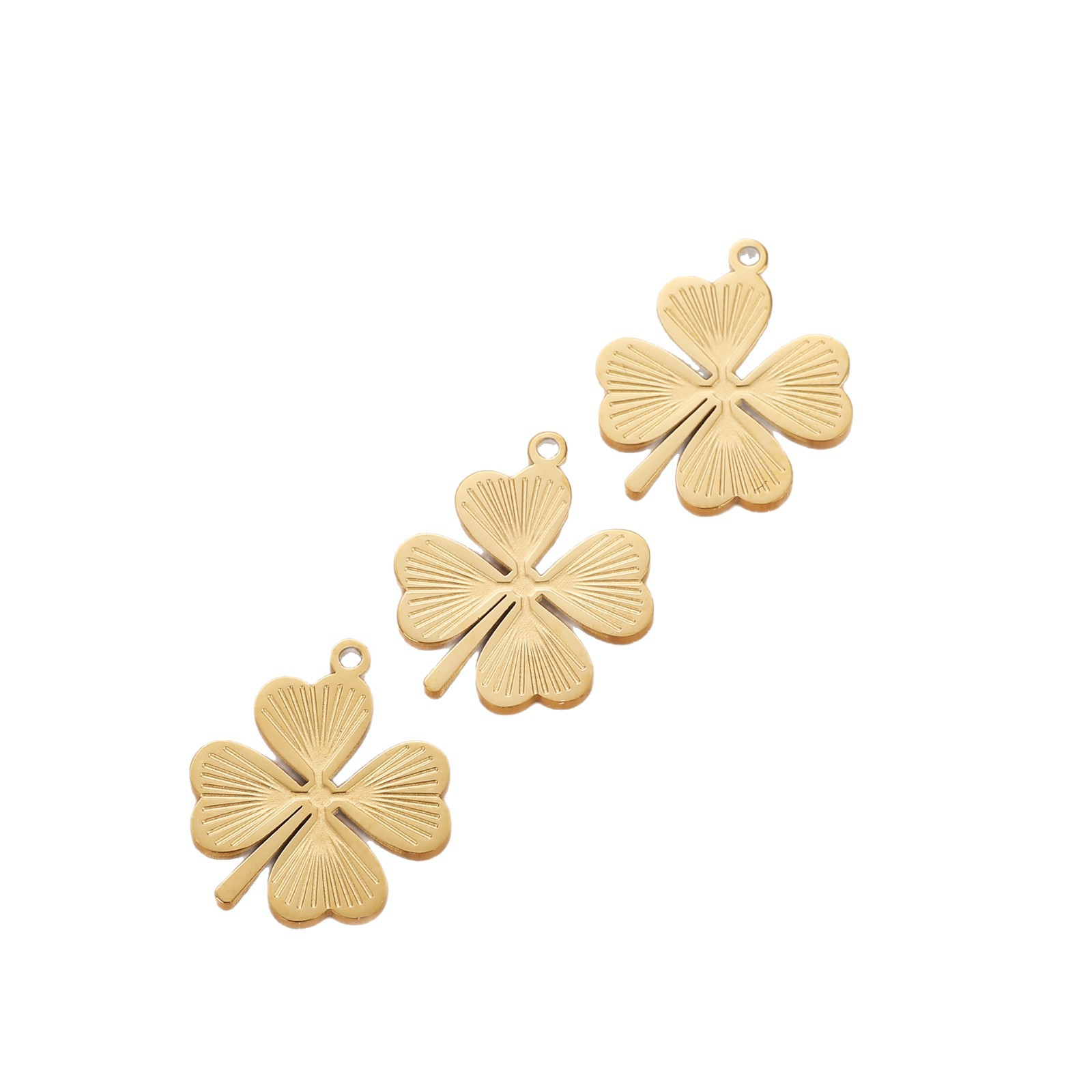 Nerezová ocel Šperky Přívěsky, 304 Stainless Steel, Four Leaf Clover, barva pozlacený, DIY, zlatý, 10PC/Bag, Prodáno By Bag
