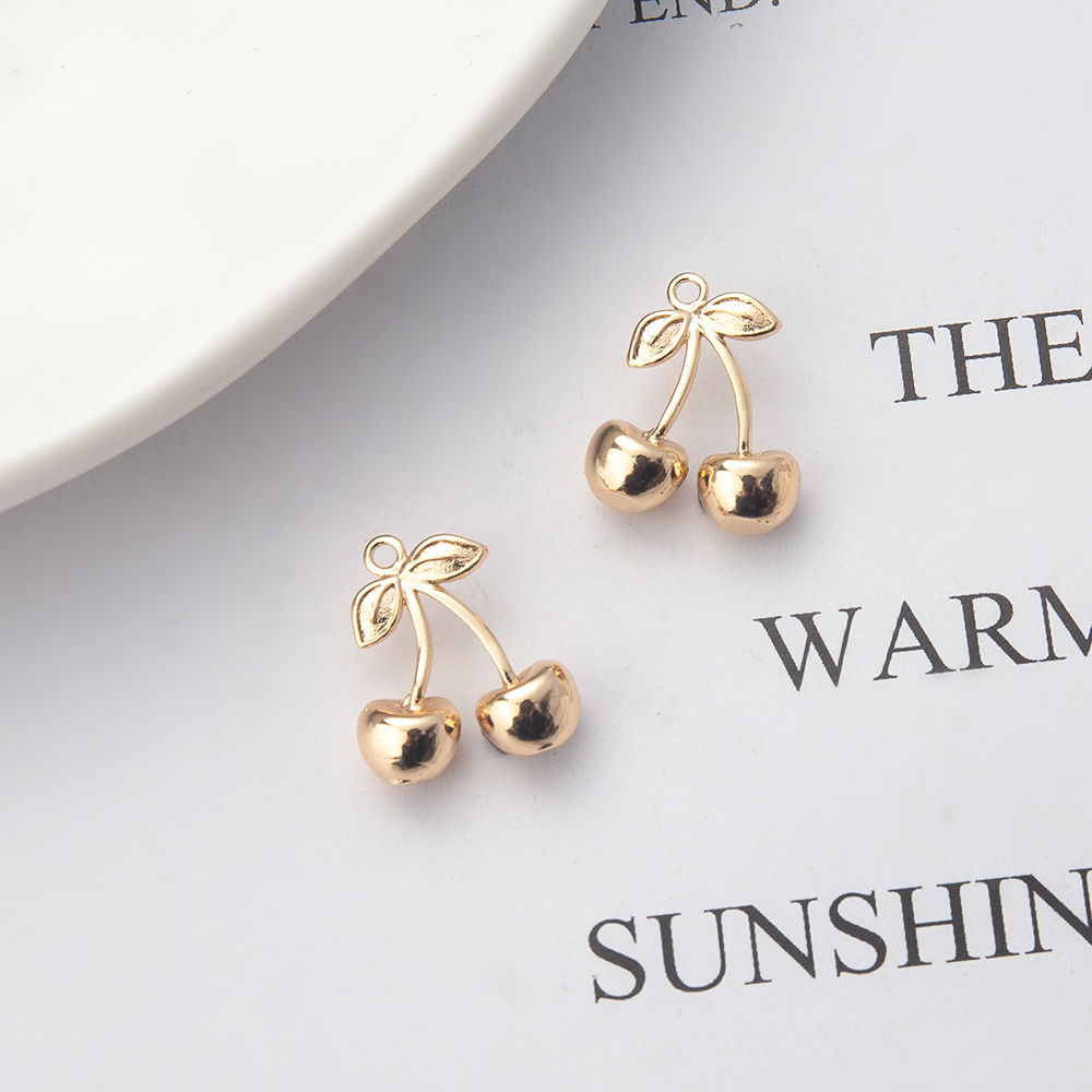 Mosaz Šperky Přívěsky, Třešeň, barva pozlacený, DIY, nikl, olovo a kadmium zdarma, 12x5x14mm, Prodáno By PC