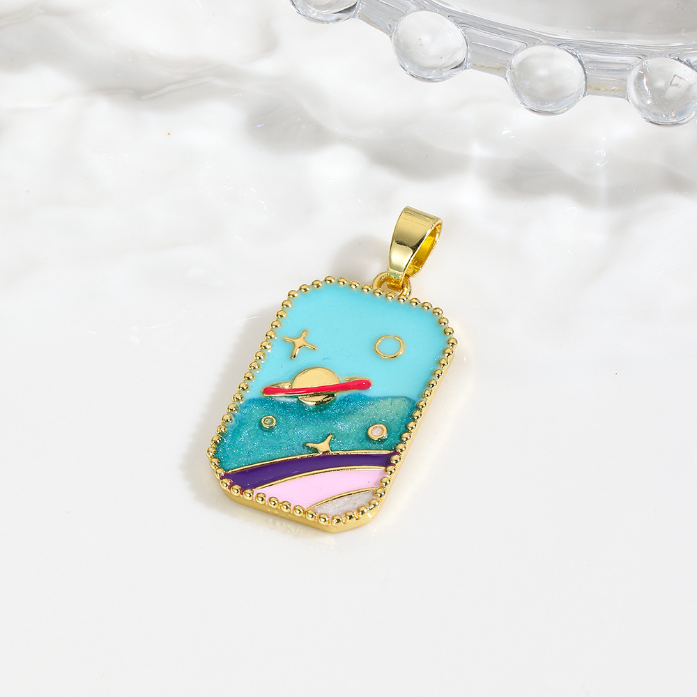 Mosaz Šperky Přívěsky, Obdélník, barva pozlacený, různé designy pro výběr & pro ženy & smalt, více barev na výběr, nikl, olovo a kadmium zdarma, Prodáno By PC