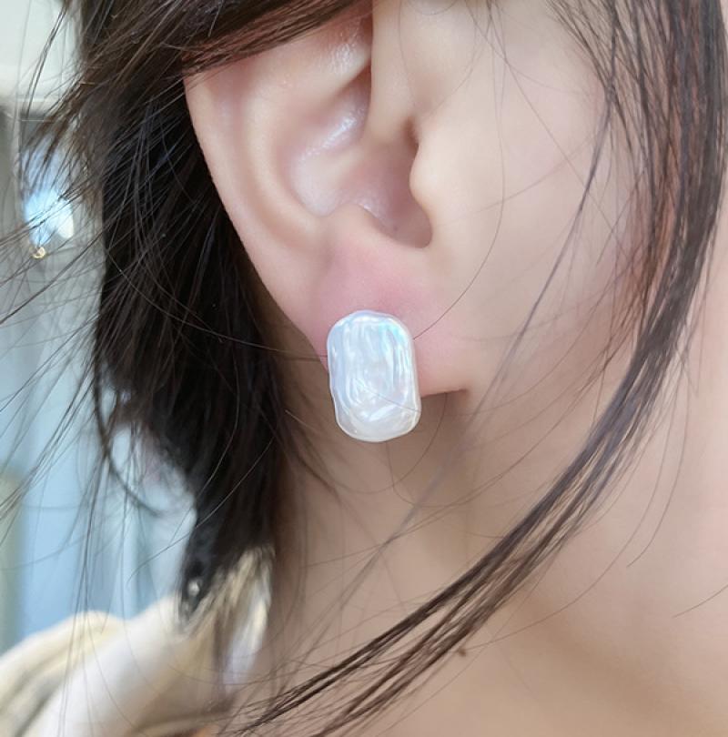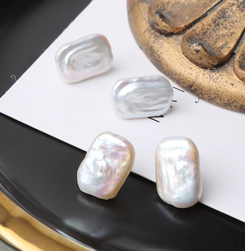 Sladkovodní Pearl náušnice, barva pozlacený, módní šperky, bílý, 16x11mm, Prodáno By Pair