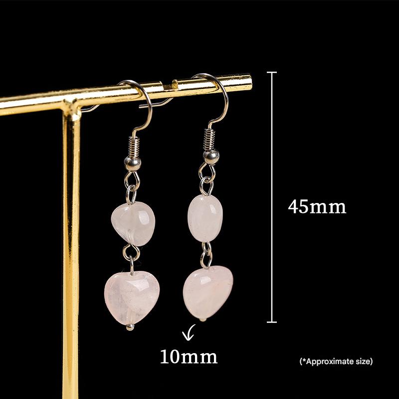 1:Natural powder crystal love stainless steel earrings2:Natural Green Dongling Love Stainless Steel Earrings
