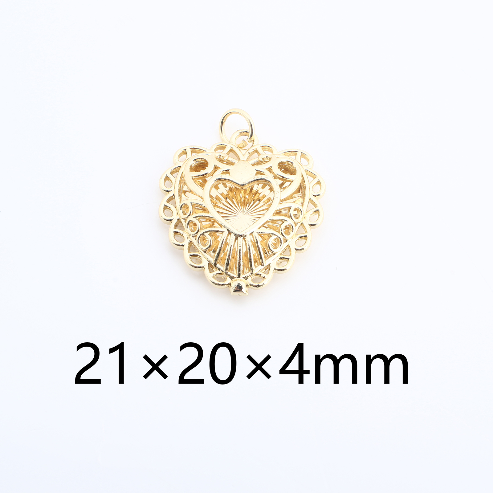 Brass srdce přívěsky, Mosaz, barva pozlacený, DIY & dutý, 21x20x4mm, Prodáno By PC