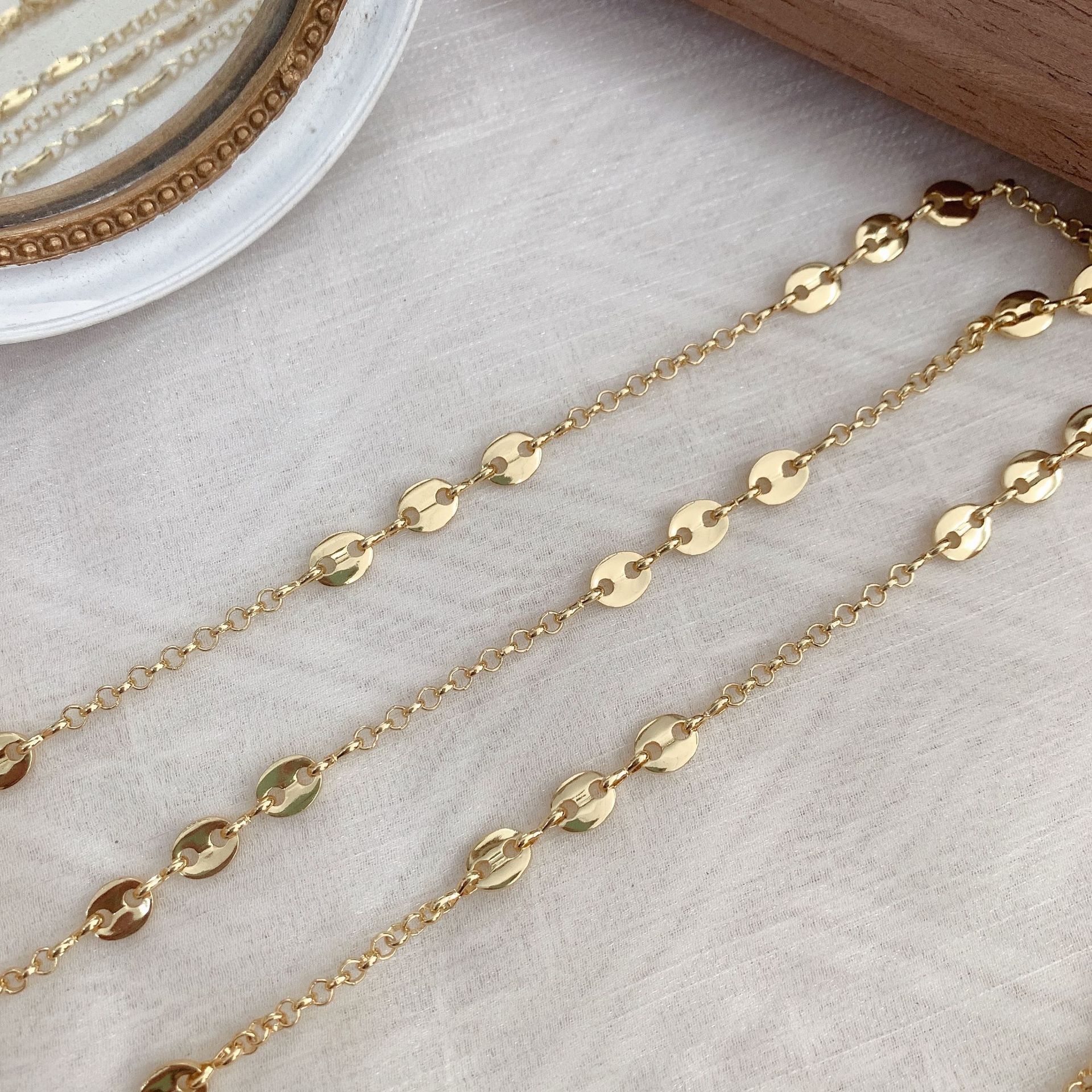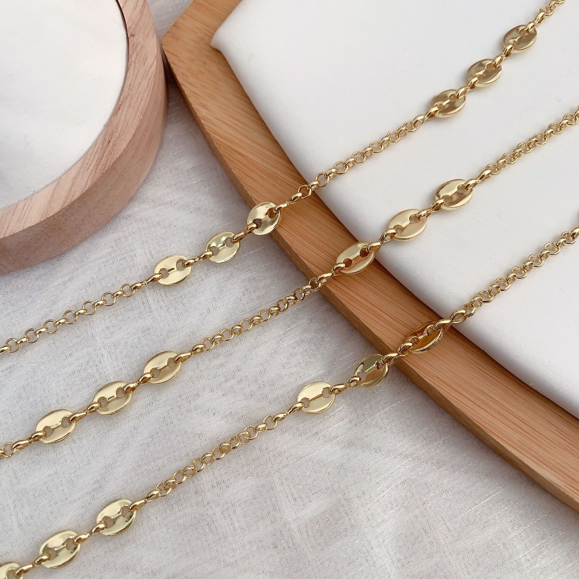Mosaz náhrdelník řetěz, barva pozlacený, DIY, nikl, olovo a kadmium zdarma, 10m/Bag, Prodáno By Bag
