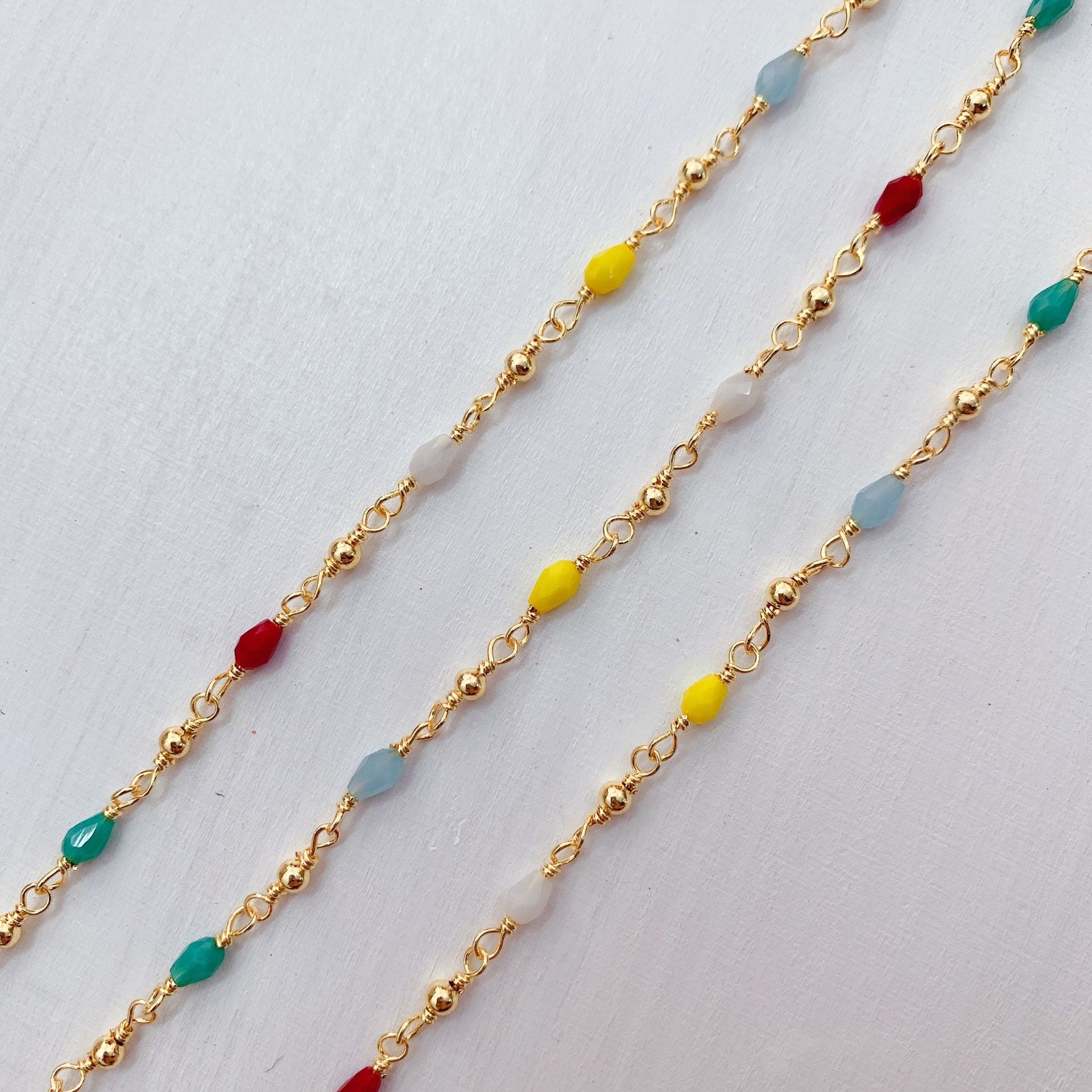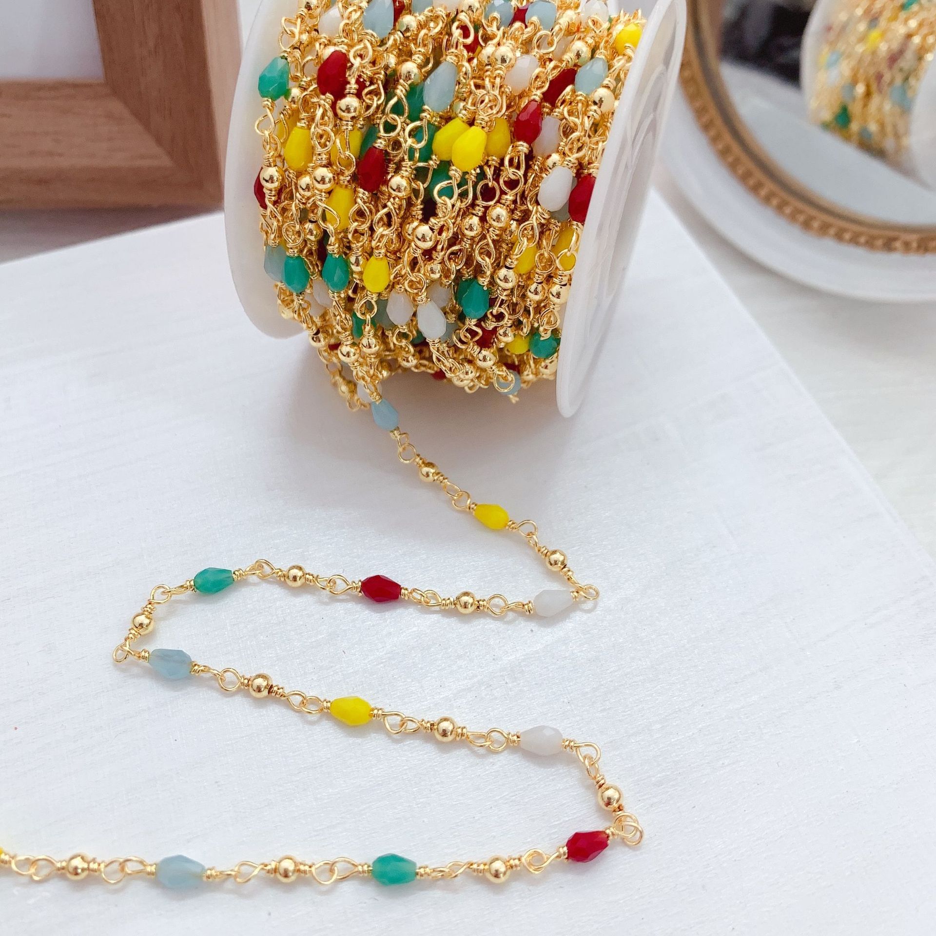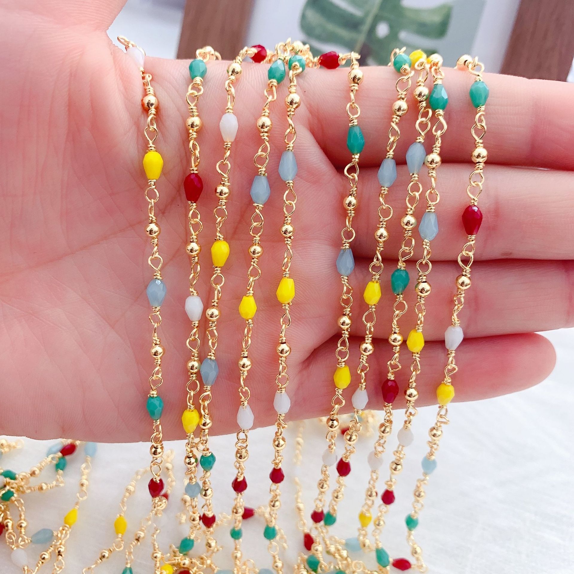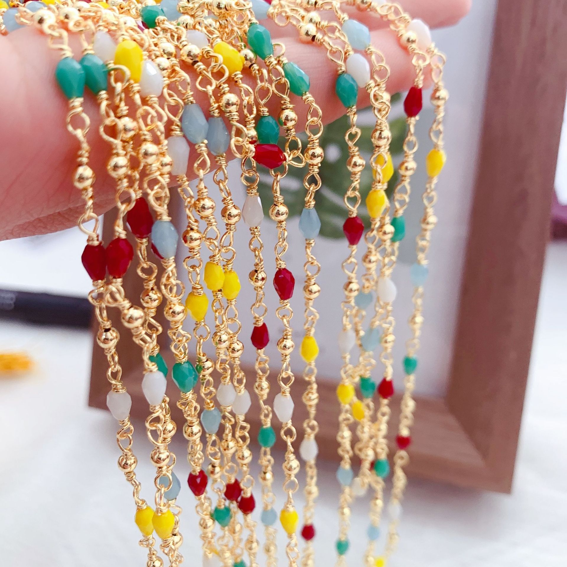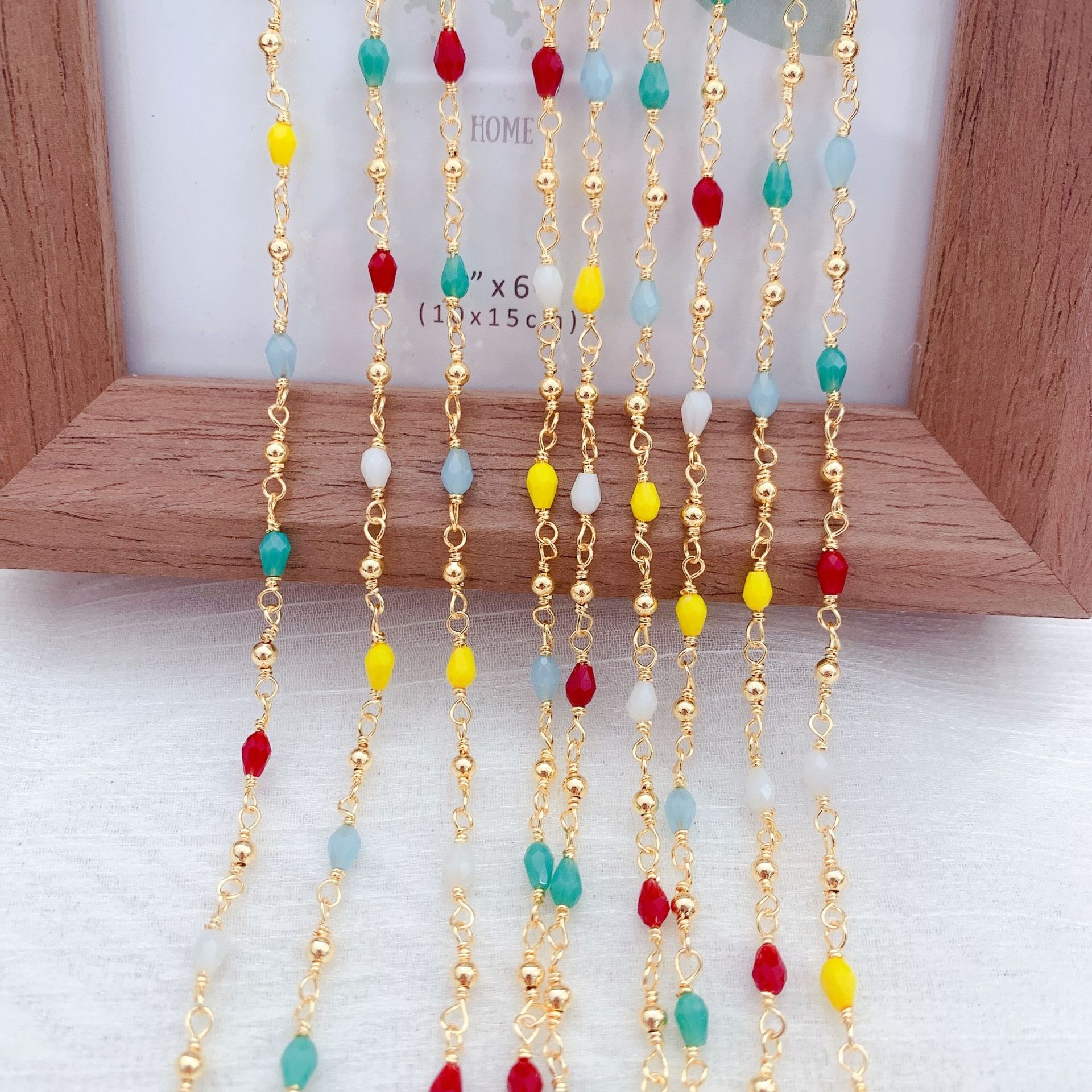 Drahokam korálkový řetěz, Mosaz, barva pozlacený, DIY & smalt, smíšené barvy, nikl, olovo a kadmium zdarma, 10m/Bag, Prodáno By Bag