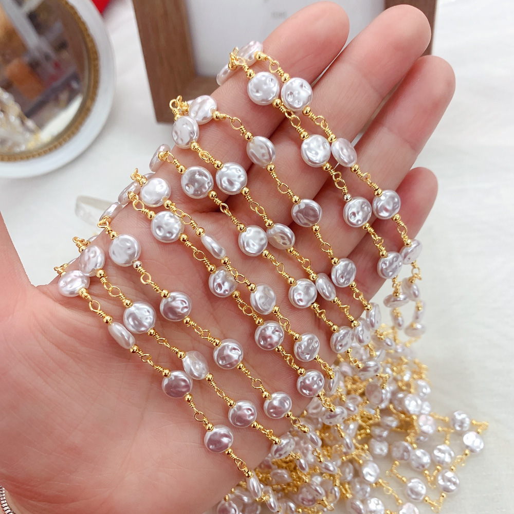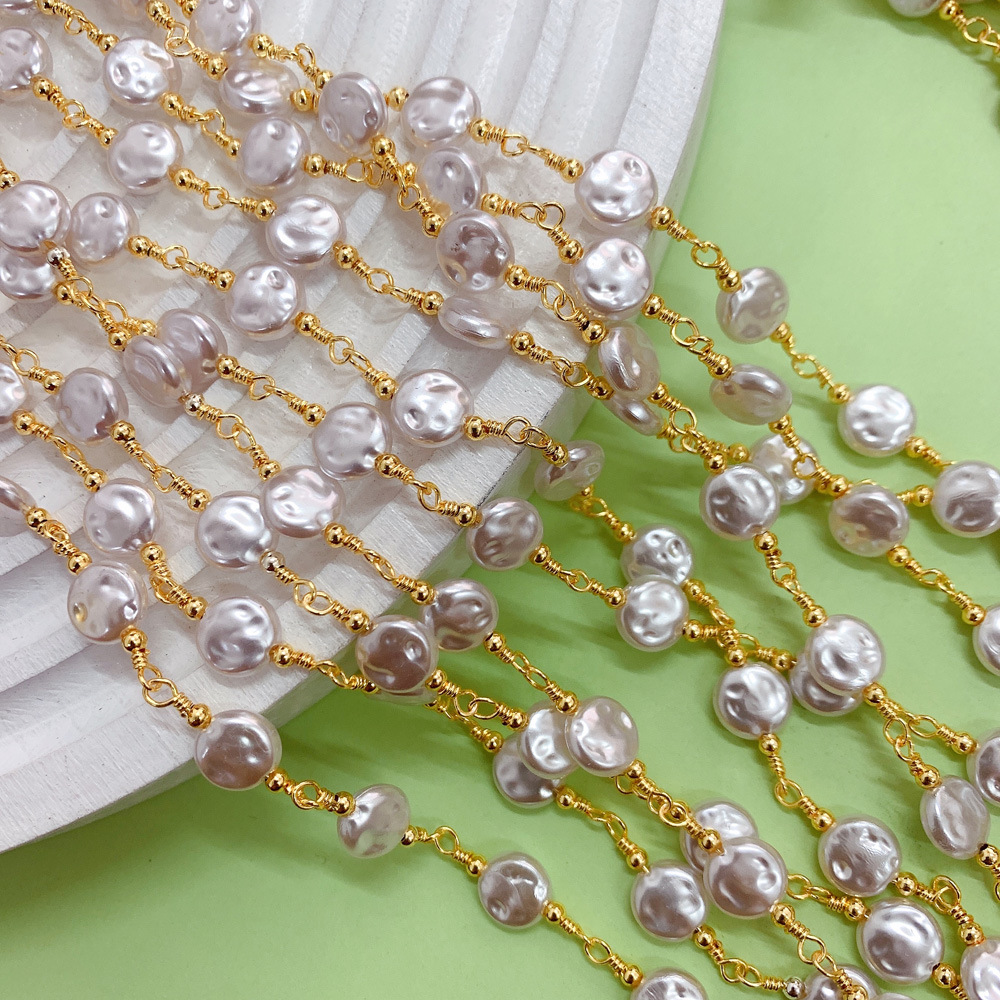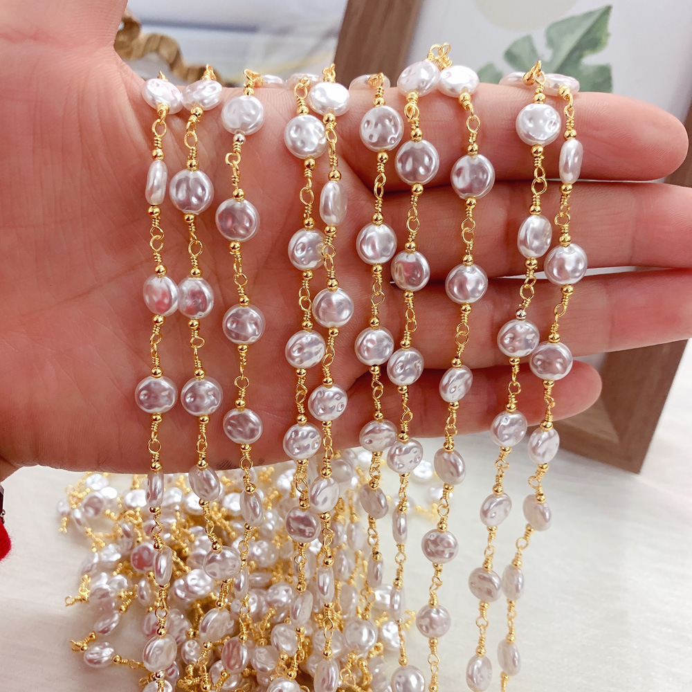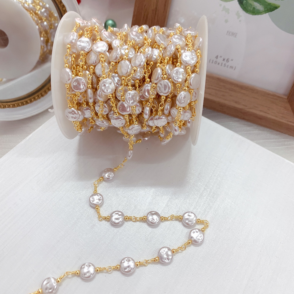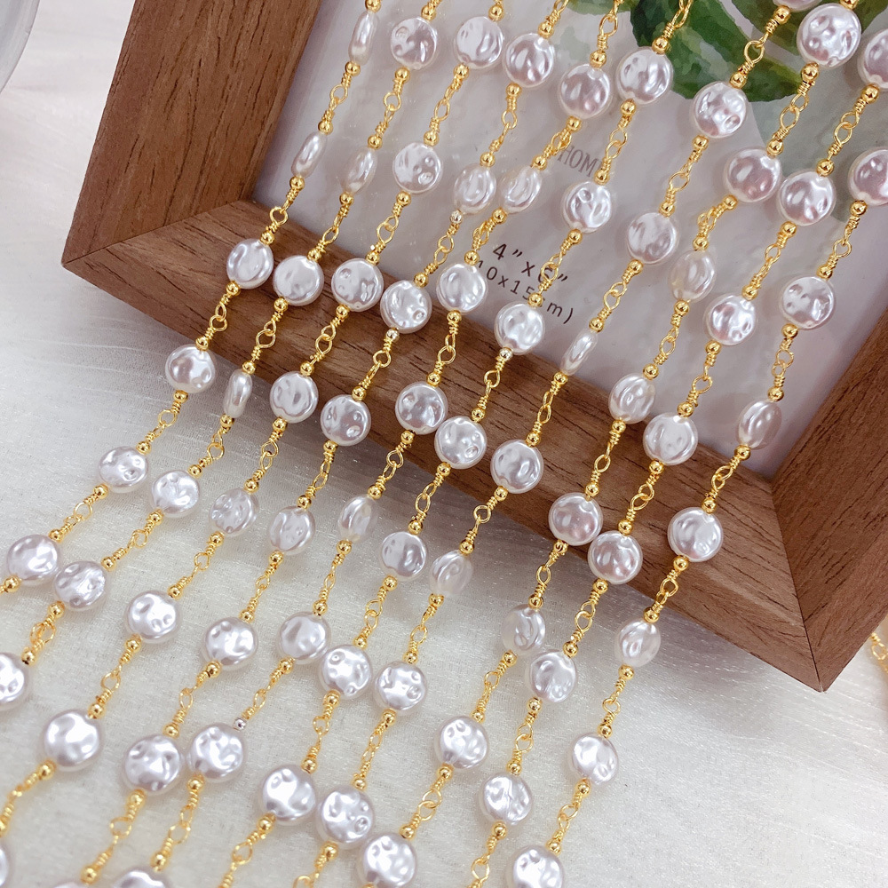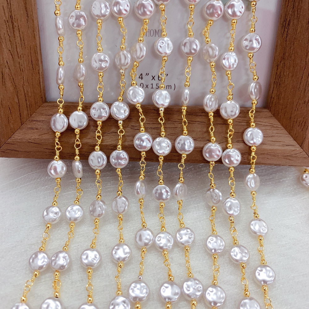 Drahokam korálkový řetěz, Mosaz, s Plastové Pearl, barva pozlacený, DIY, nikl, olovo a kadmium zdarma, 1m/