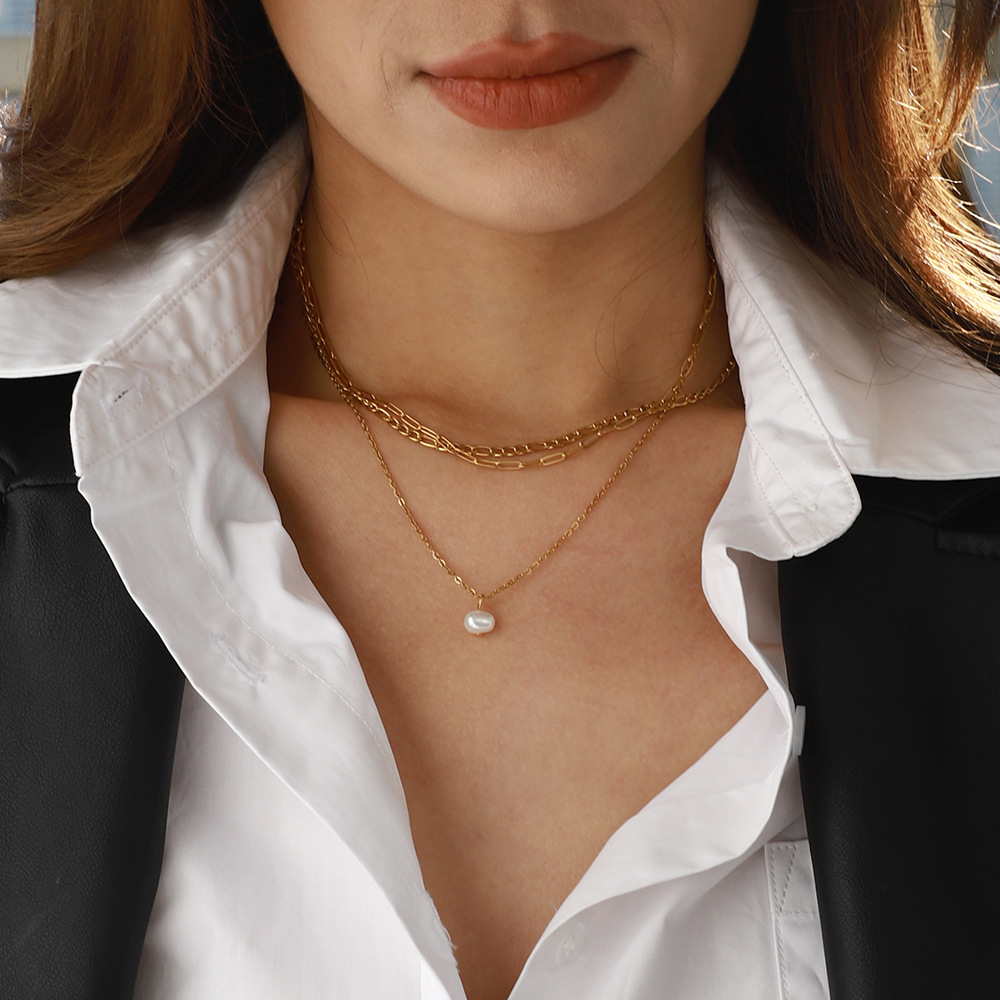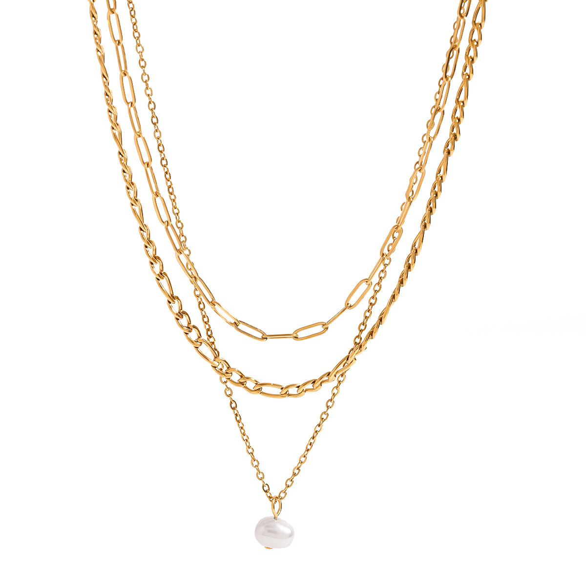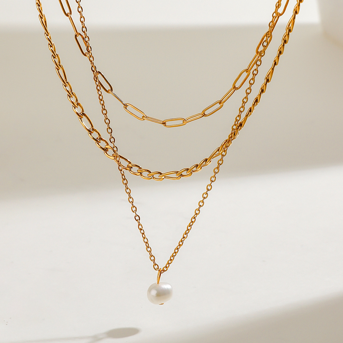 Módní náhrdelník Multi Layer, 304 Stainless Steel, s Plastové Pearl, barva pozlacený, módní šperky, zlatý, Prodáno By PC