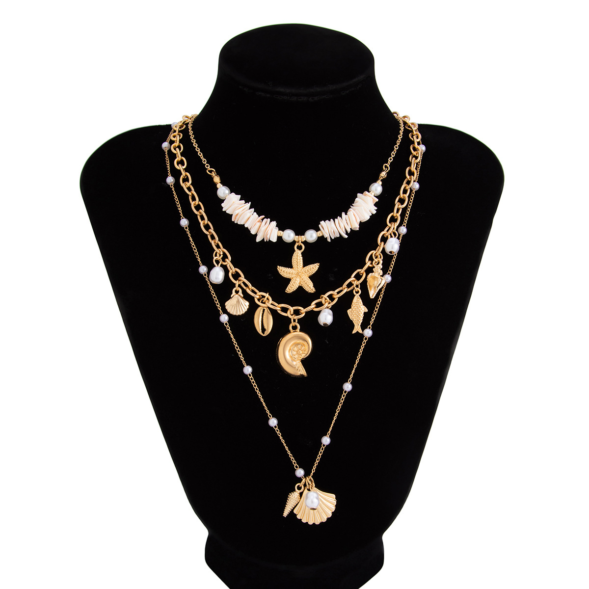 Módní náhrdelník Multi Layer, Zinek, s železný řetěz & Skořápka & Plastové Pearl, tři kusy & módní šperky & pro ženy, zlatý, Prodáno By nastavit