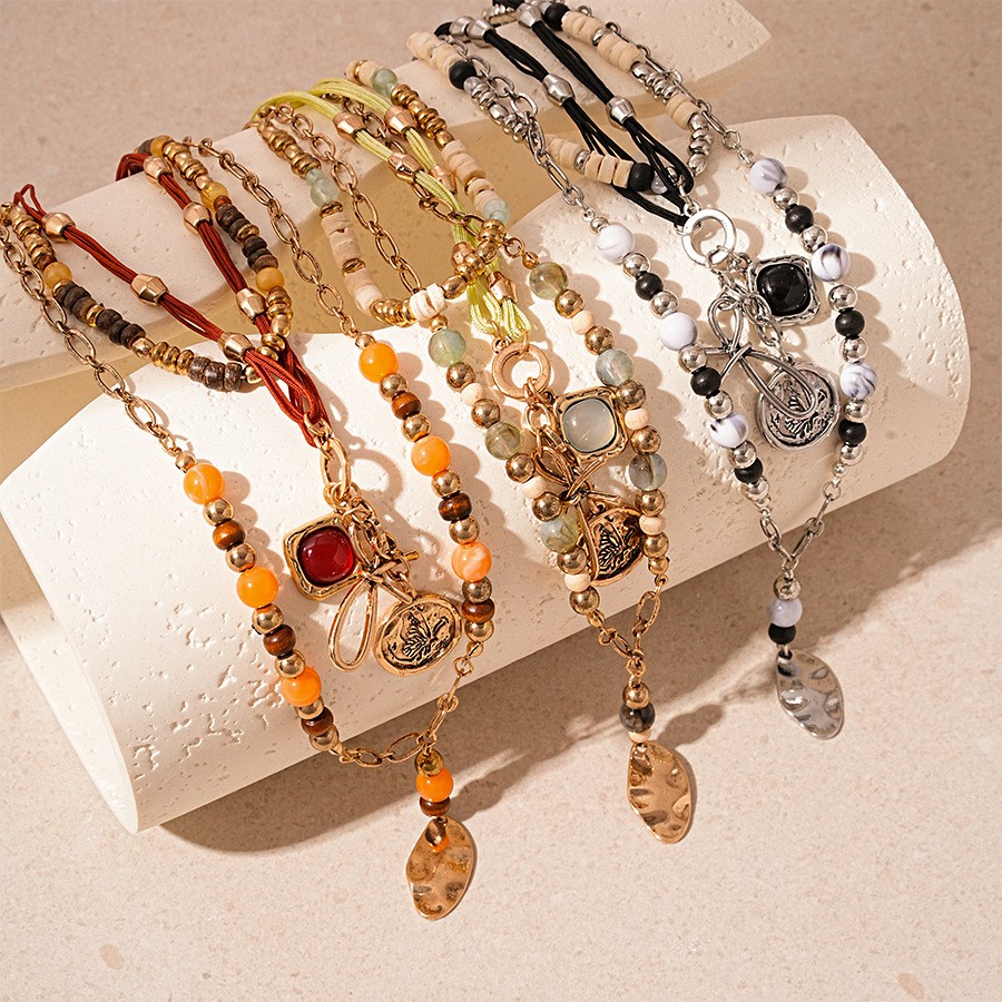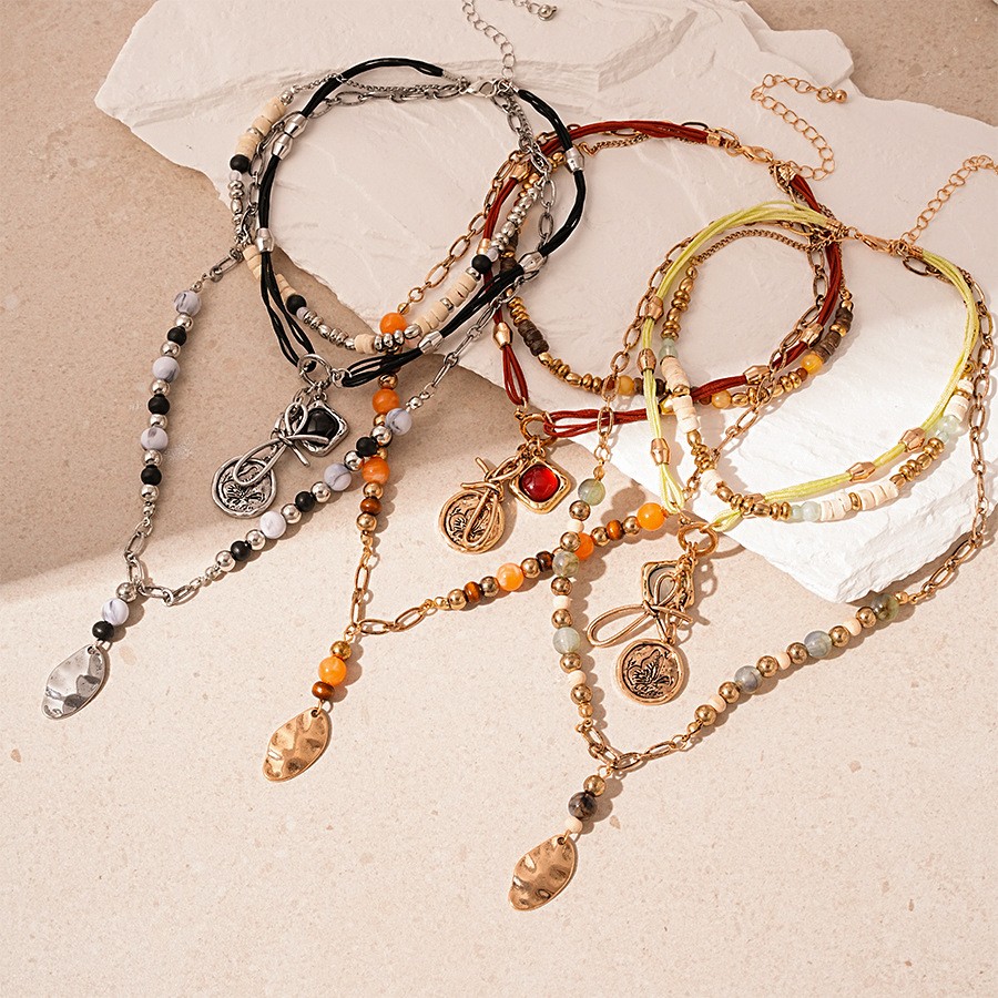 1:Orange Multi-Layer Beaded Necklace2:Black Multi-Layer Beaded Necklace3:Green Multi-Layer Beaded Necklace