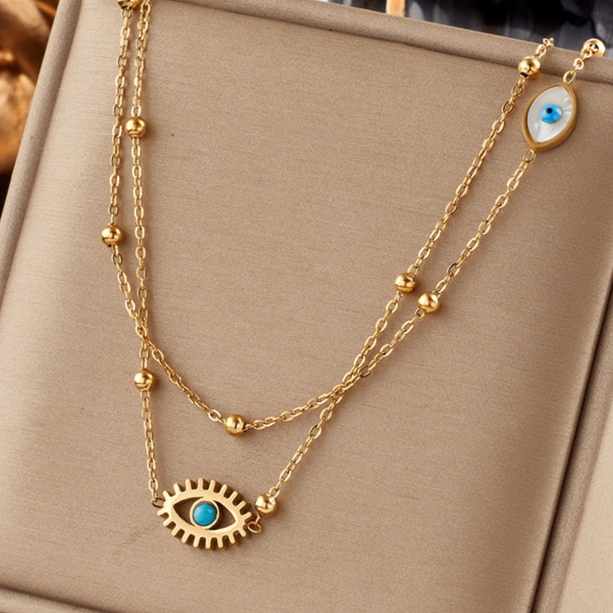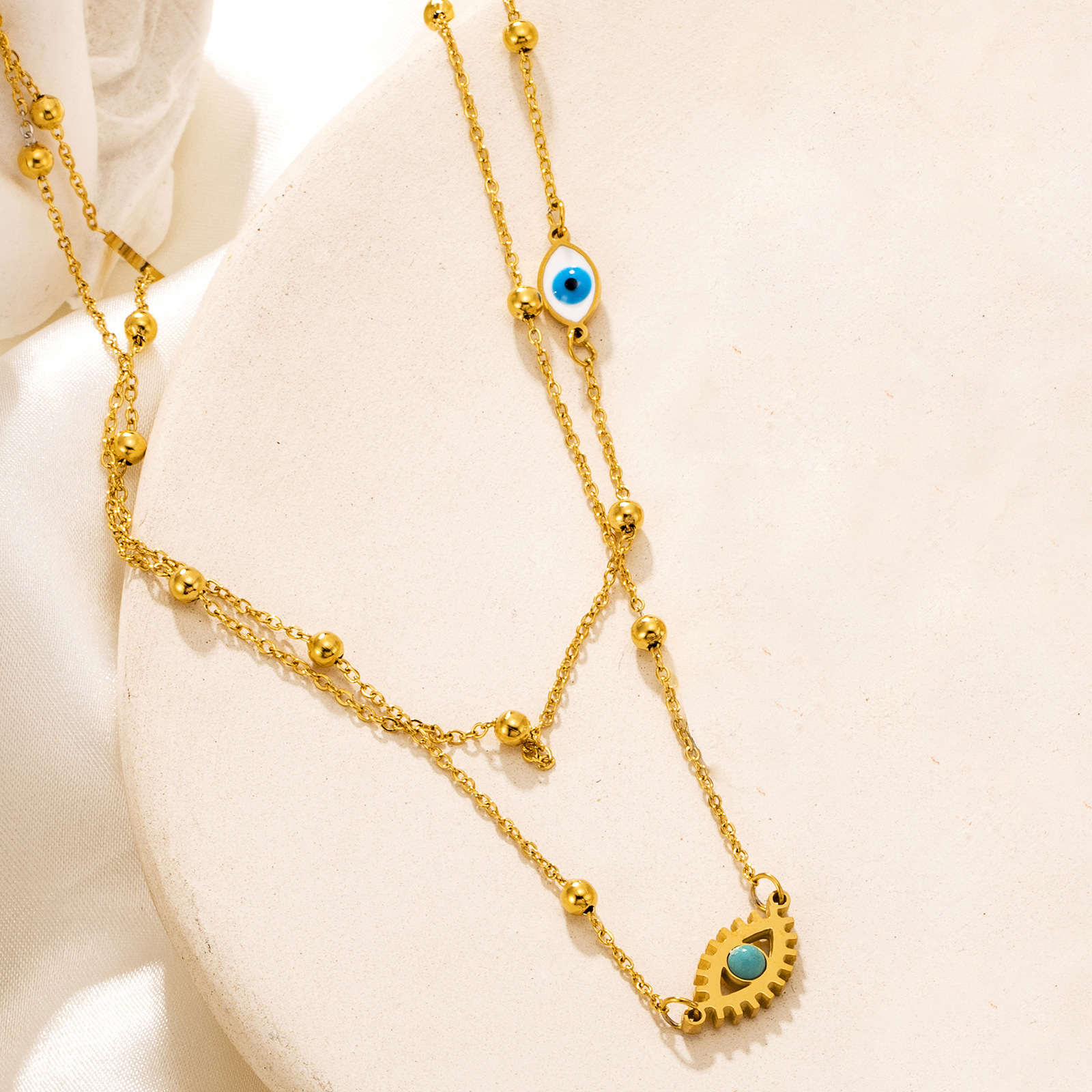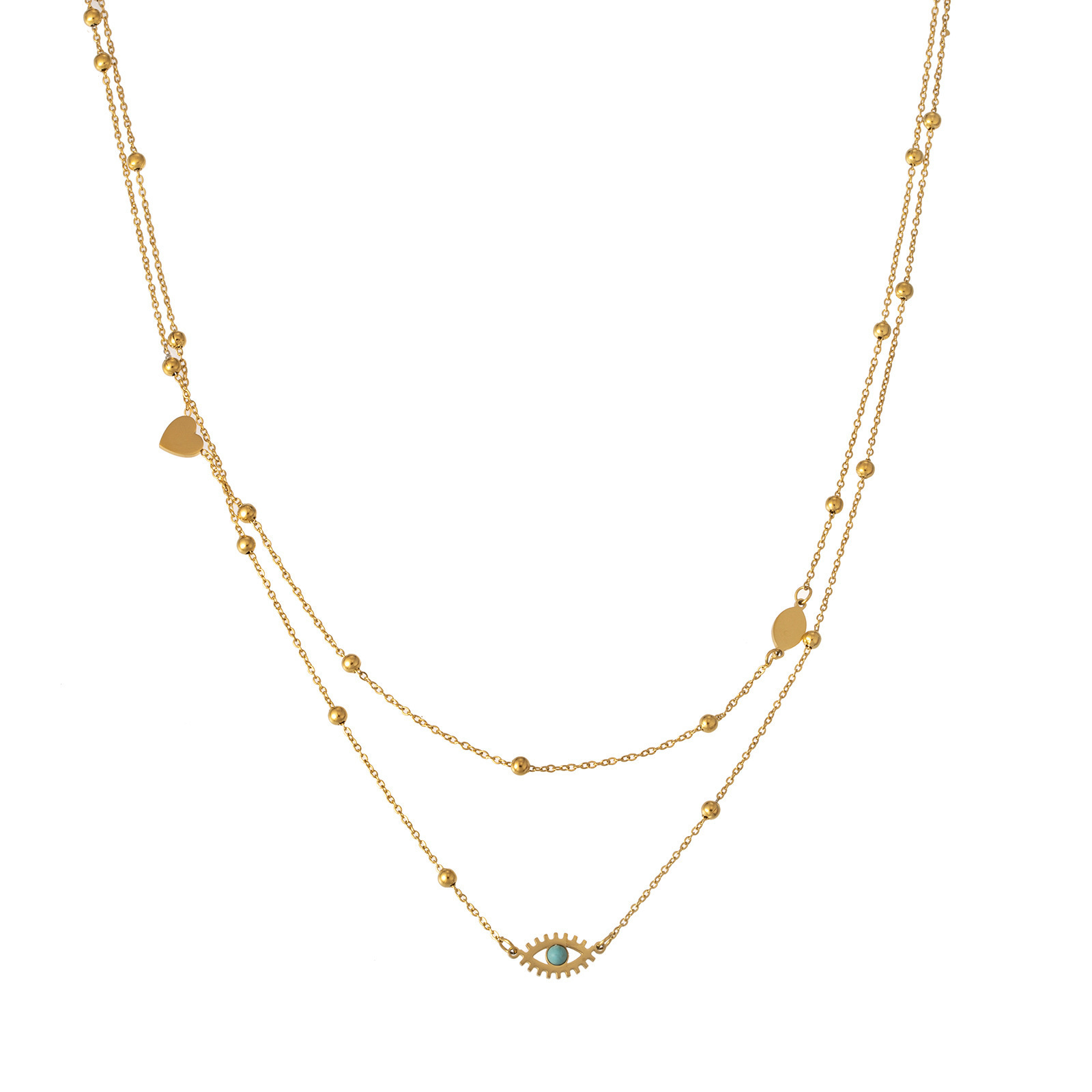 Módní náhrdelník Multi Layer, 304 Stainless Steel, s tyrkysový, Dvojitá vrstva & pro ženy & smalt, zlatý, Prodáno By PC