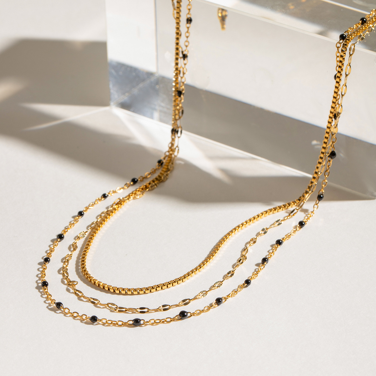 Módní náhrdelník Multi Layer, 304 Stainless Steel, tři vrstvy & různé styly pro výběr & pro ženy, zlatý, Prodáno By PC