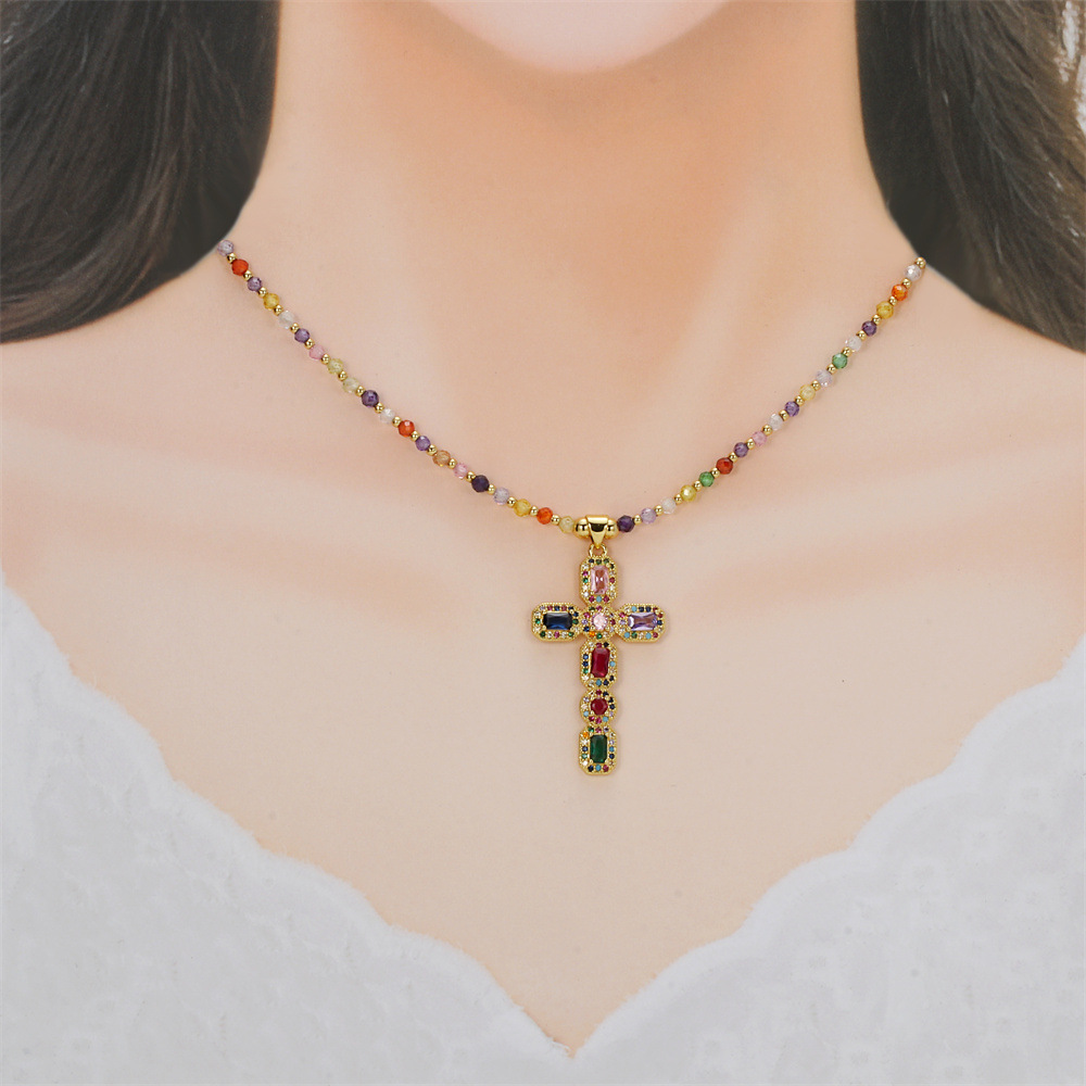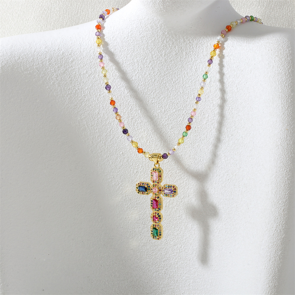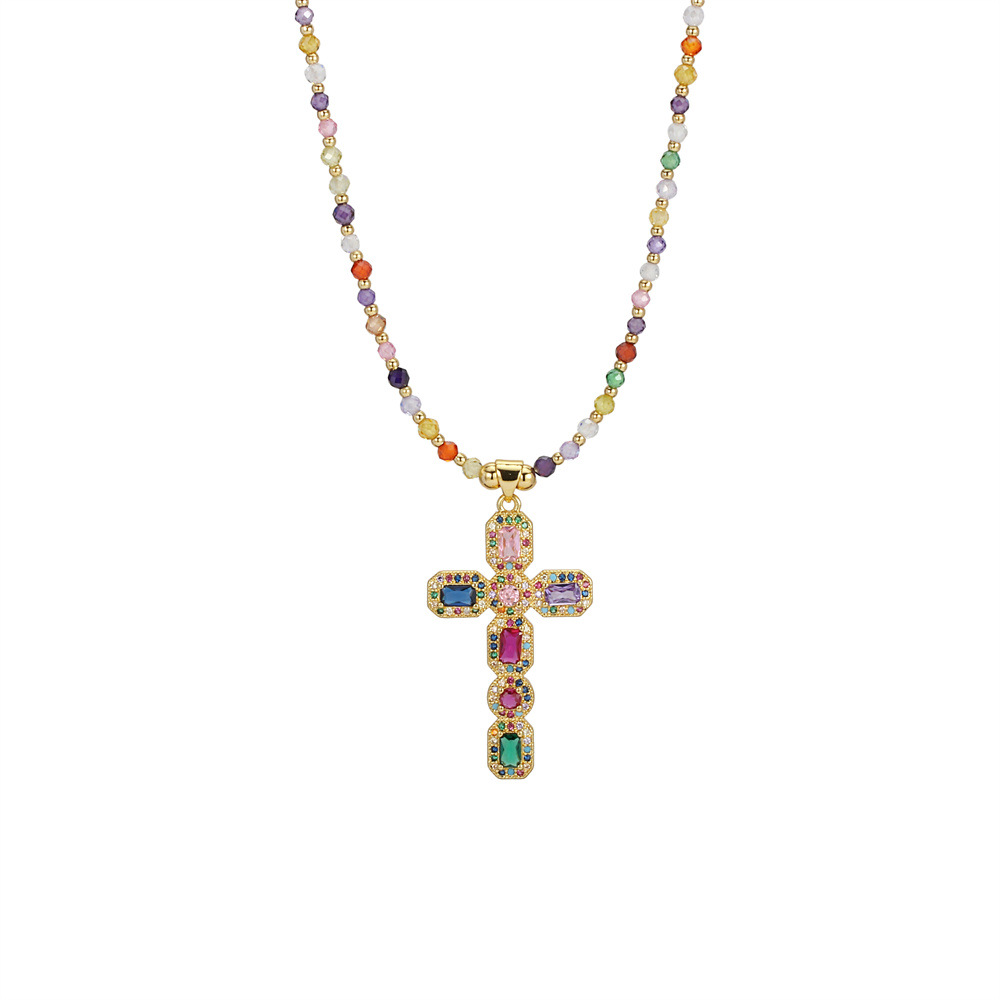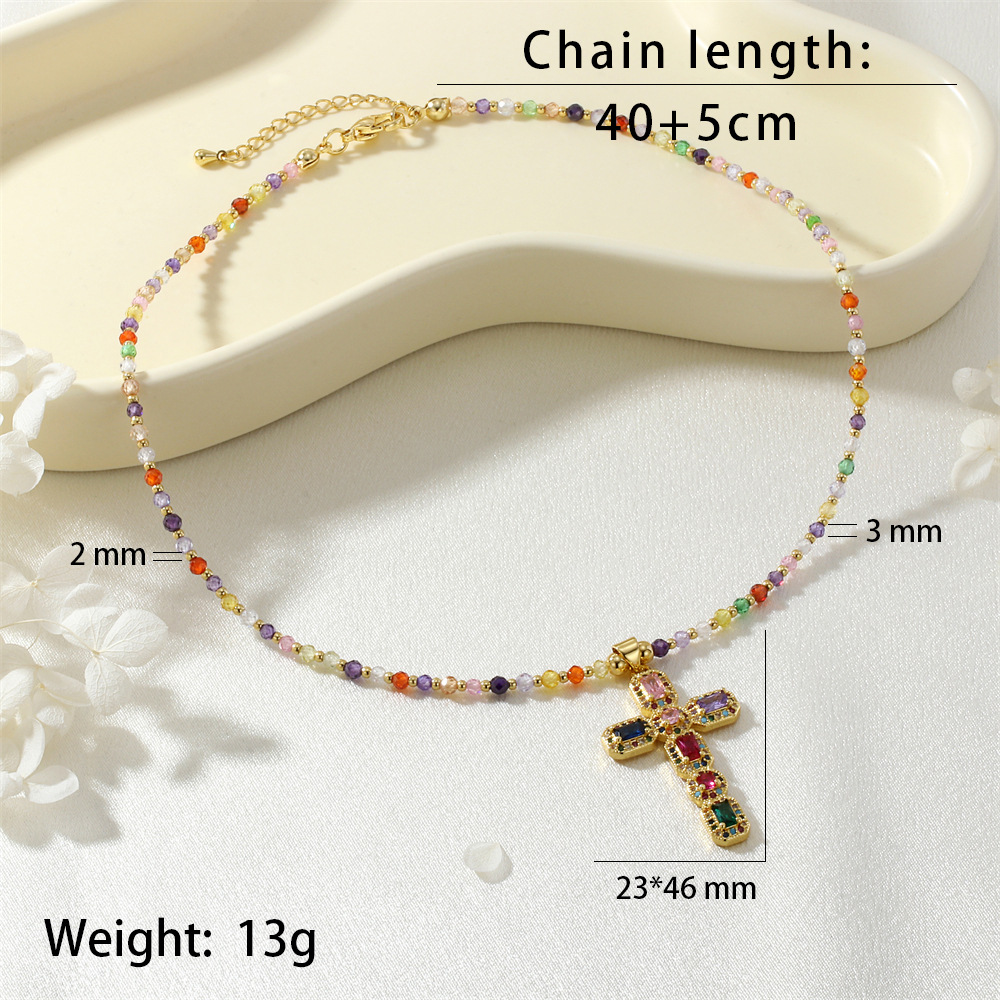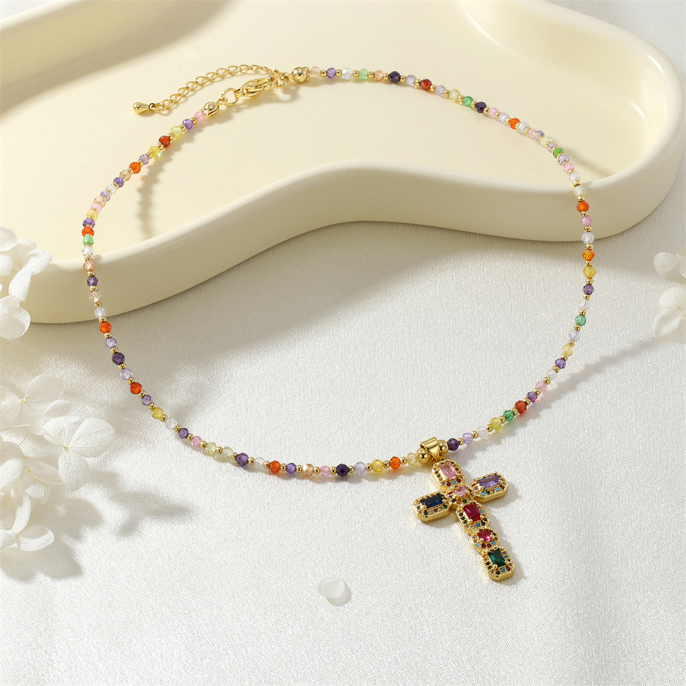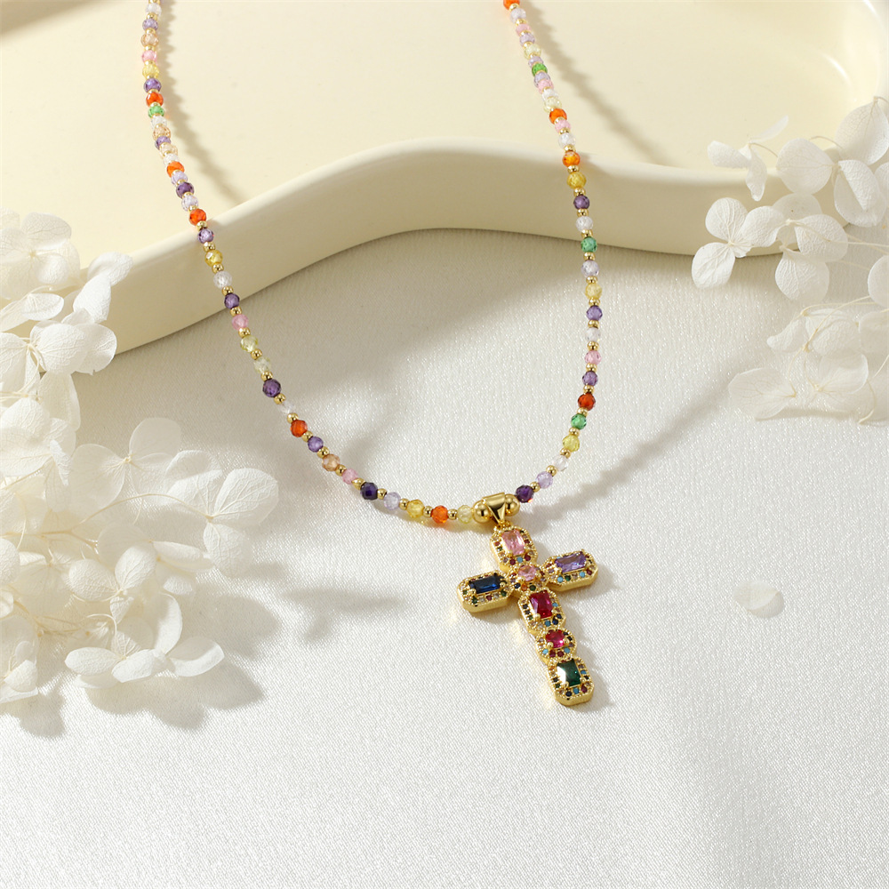 Kubický zirkon Micro vydláždit mosaz náhrdelník, s Umělá hmota, Kříž, barva pozlacený, micro vydláždit kubické zirkony & pro ženy, multi-barevný, nikl, olovo a kadmium zdarma, Prodáno By PC