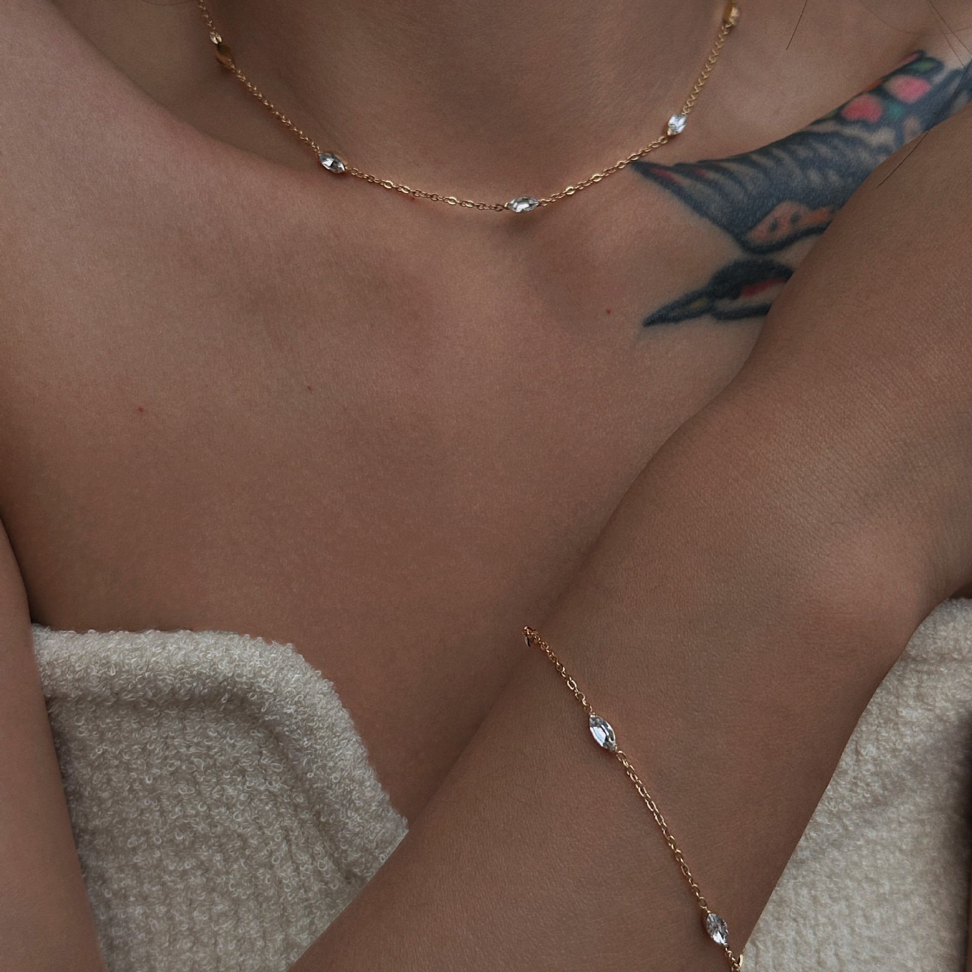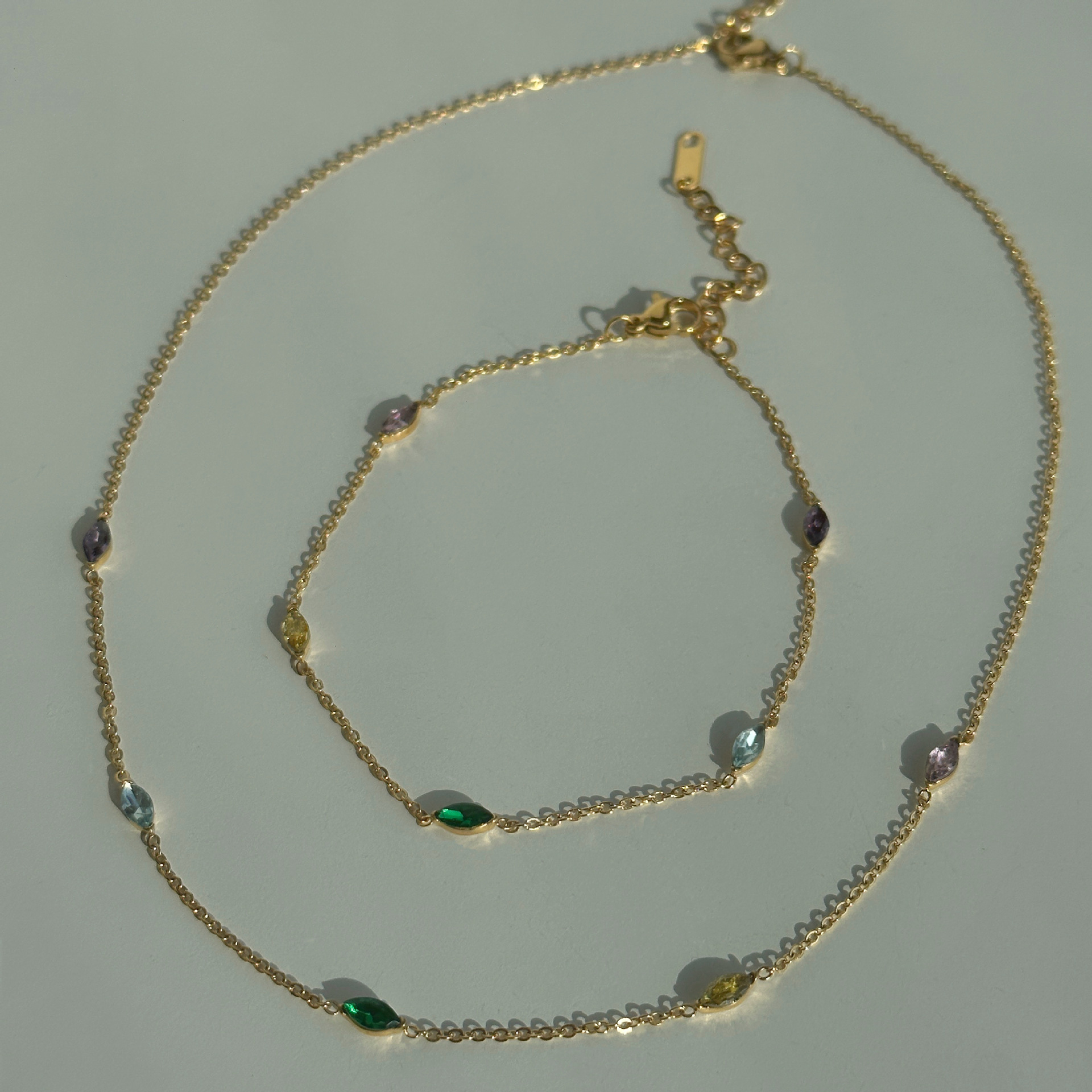 1:41 5cm necklace color zirconium2:16 4cm Bracelet Color Zirconium3:41 5cm necklace transparent zirconium4:16 4cm Bracelet Transparent Zirconium
