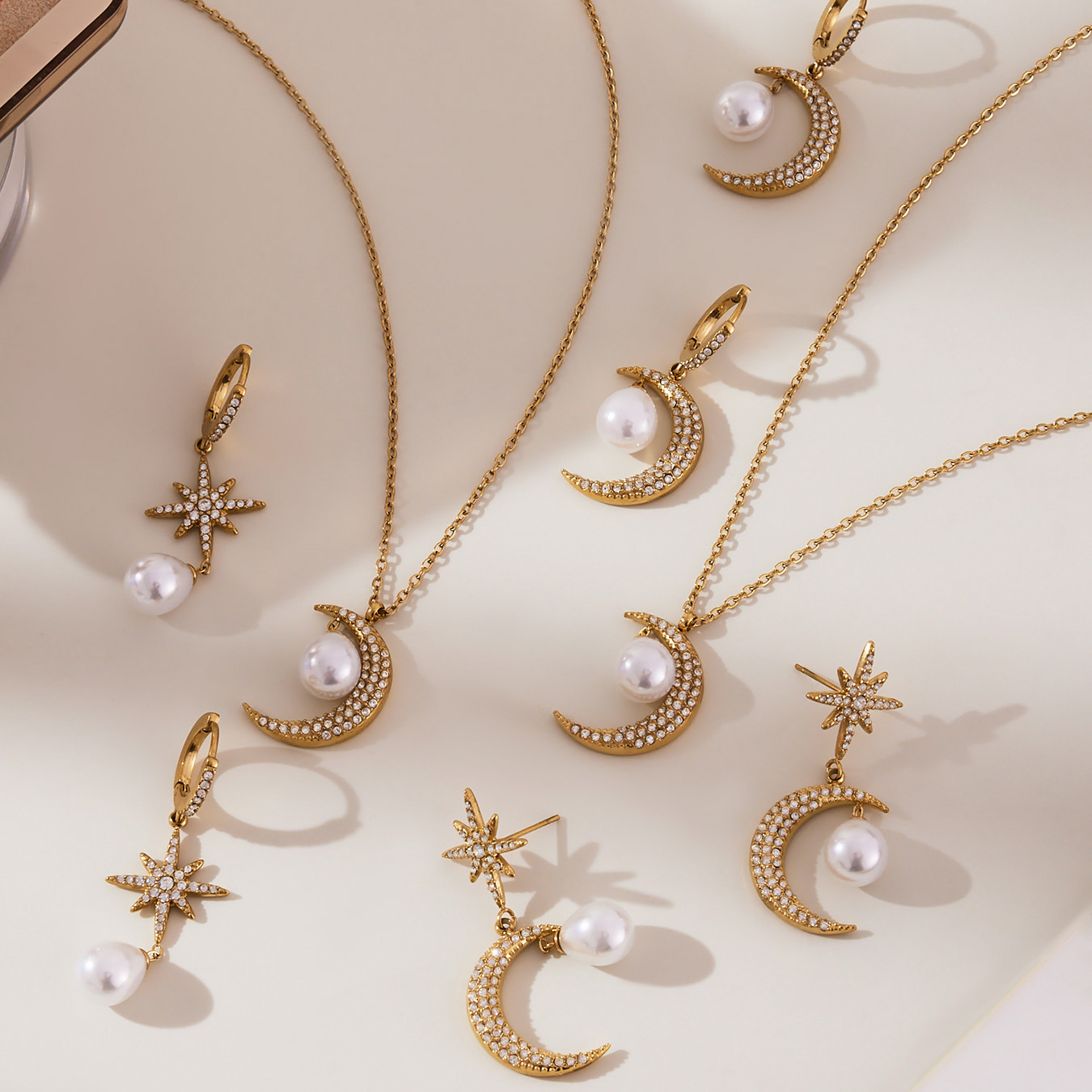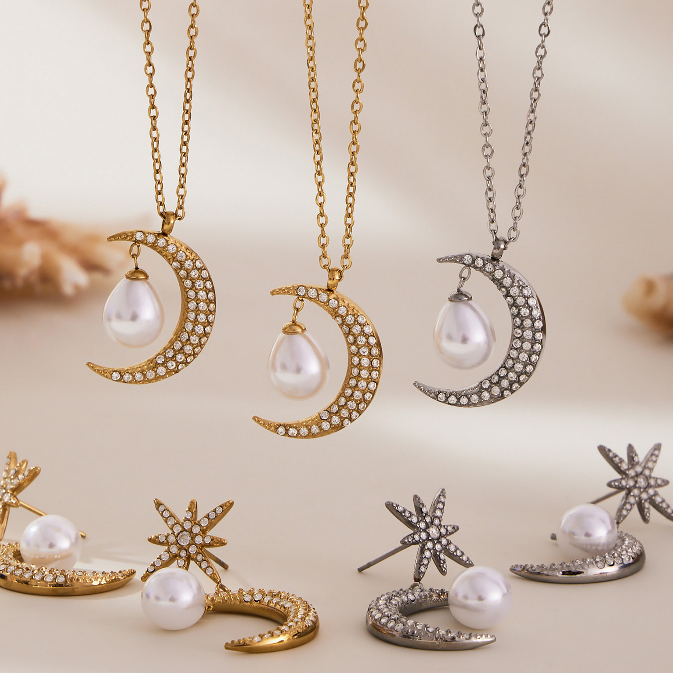 1:Gold - Necklace2:Steel - Necklace3:Gold - Earrings 14:Steel color - Earrings 15:Gold - Earrings 26:Steel color - Earrings 2