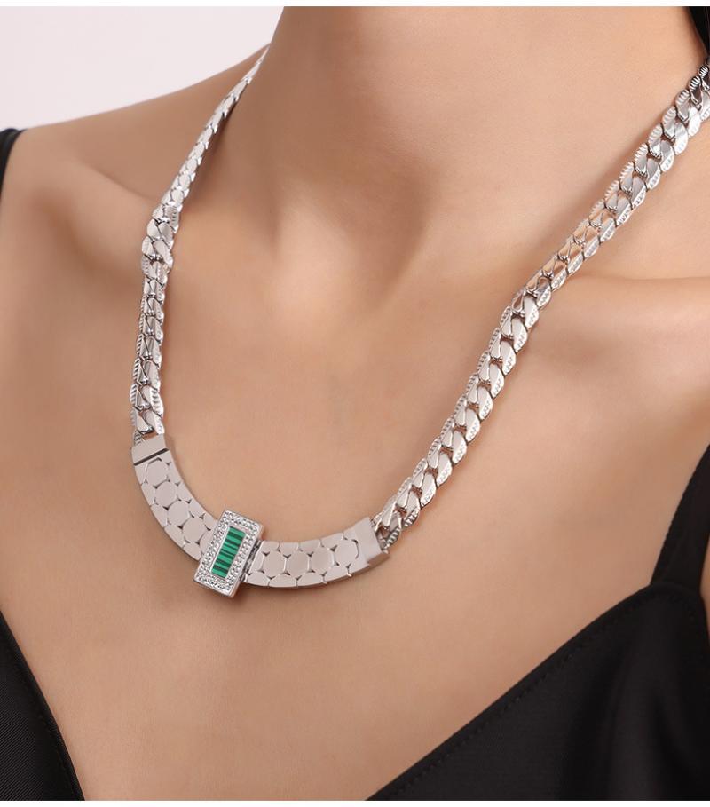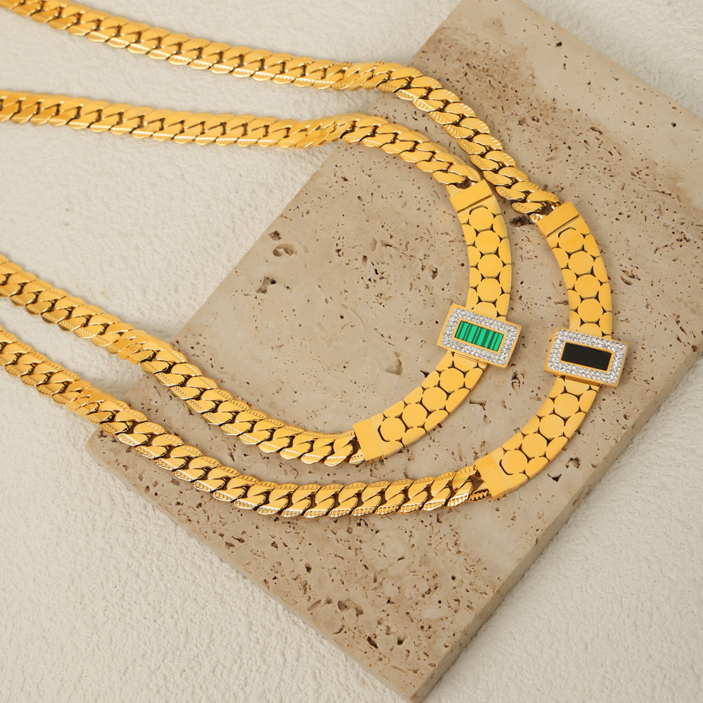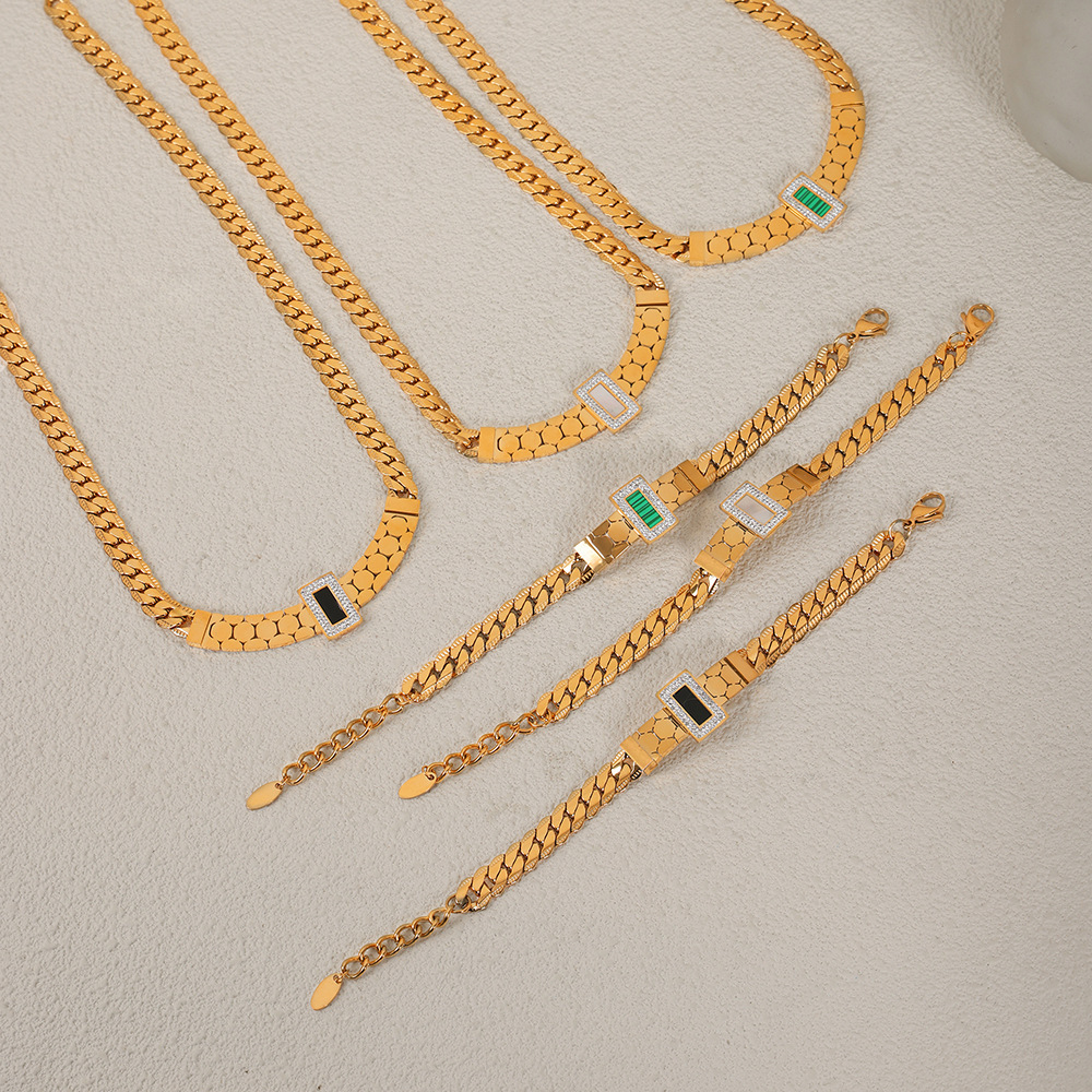 Cubic Zirconia Sada nerezových šperků, náramek & náhrdelník, 304 Stainless Steel, s Malachit & White Shell & Akryl, barva pozlacený, módní šperky & micro vydláždit kubické zirkony, více barev na výběr, Prodáno By PC