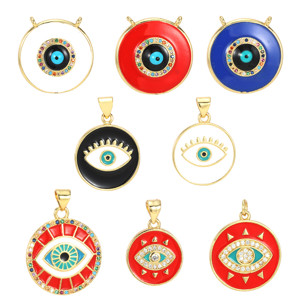 Kubické zirkonie Mikro dláždí mosaz s přívěskem, barva pozlacený, DIY & zlo vzor oko & různé styly pro výběr & micro vydláždit kubické zirkony & smalt, více barev na výběr, nikl, olovo a kadmium zdarma, Prodáno By PC