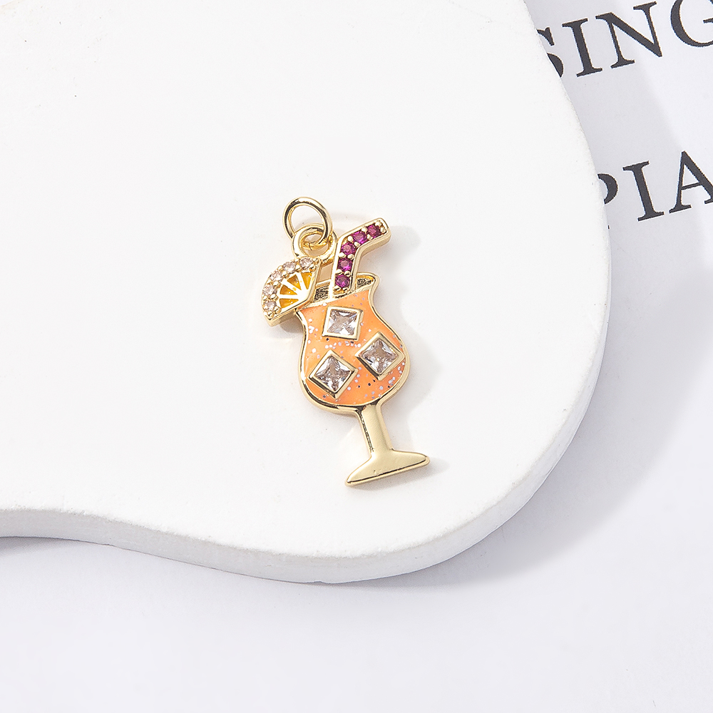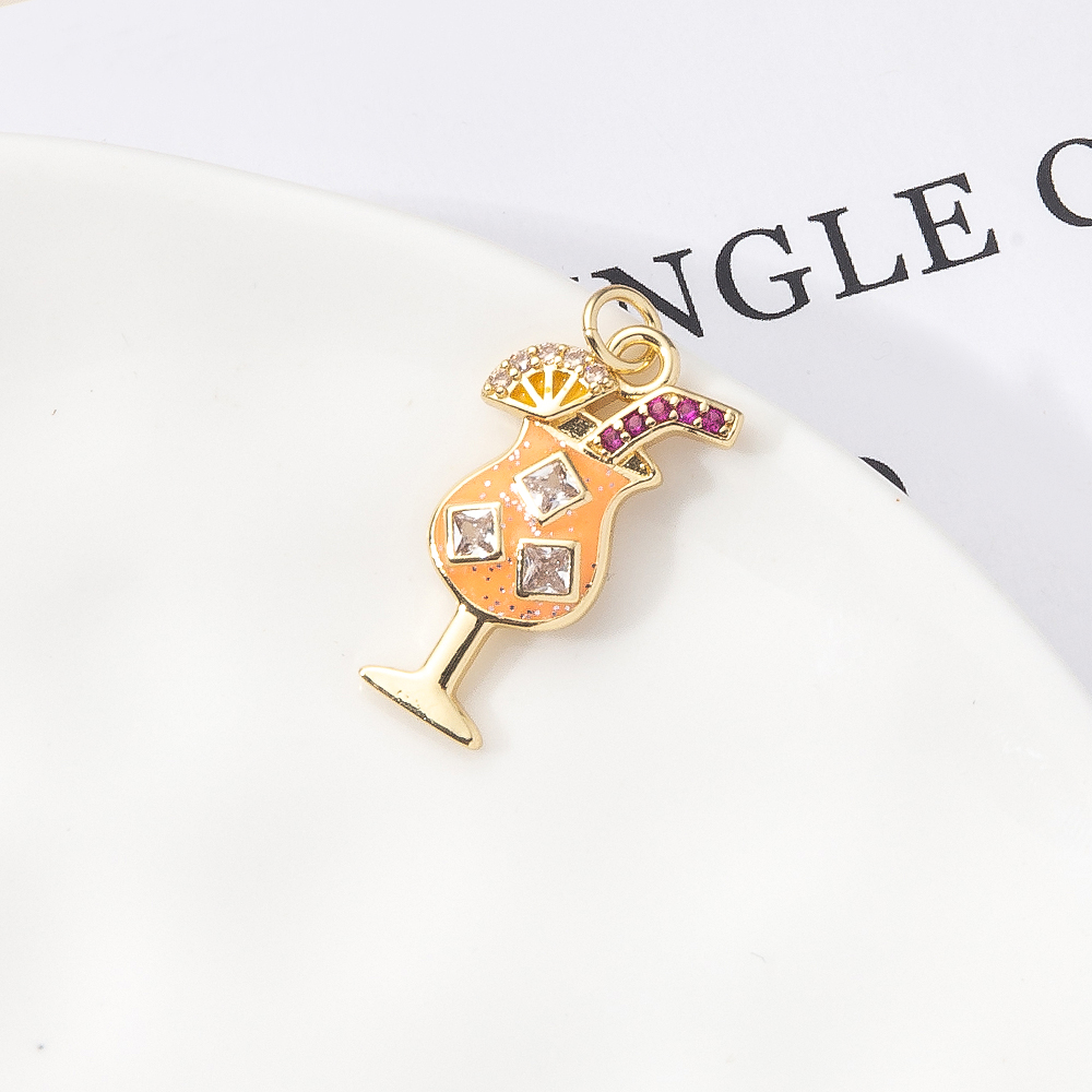Kubické zirkonie Mikro dláždí mosaz s přívěskem, Šálek, barva pozlacený, DIY & micro vydláždit kubické zirkony & smalt, nikl, olovo a kadmium zdarma, 13x3x27mm, Prodáno By PC