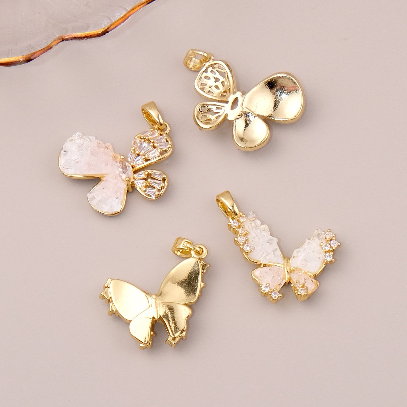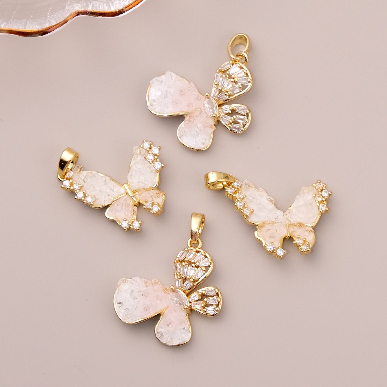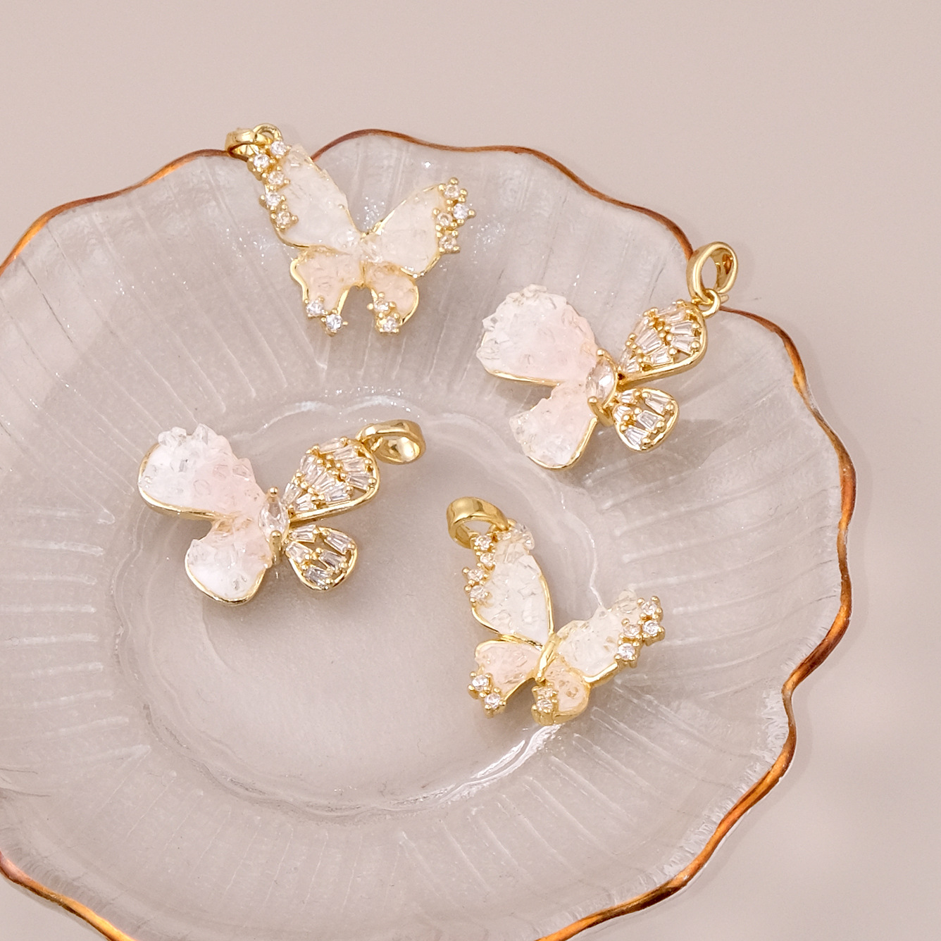 Kubické zirkonie Mikro dláždí mosaz s přívěskem, s Sklo, Motýl, barva pozlacený, DIY & různé styly pro výběr & micro vydláždit kubické zirkony, více barev na výběr, nikl, olovo a kadmium zdarma, Prodáno By PC