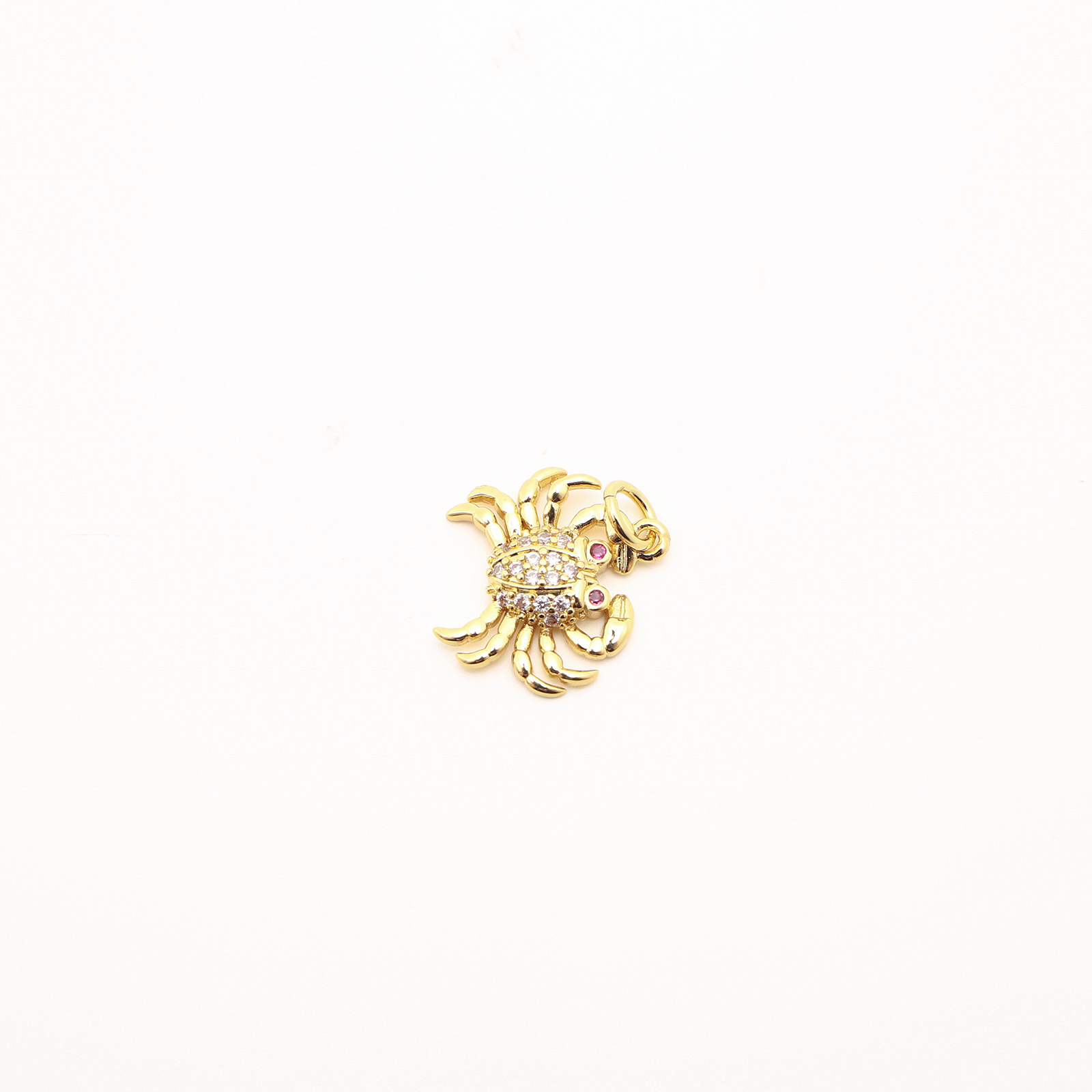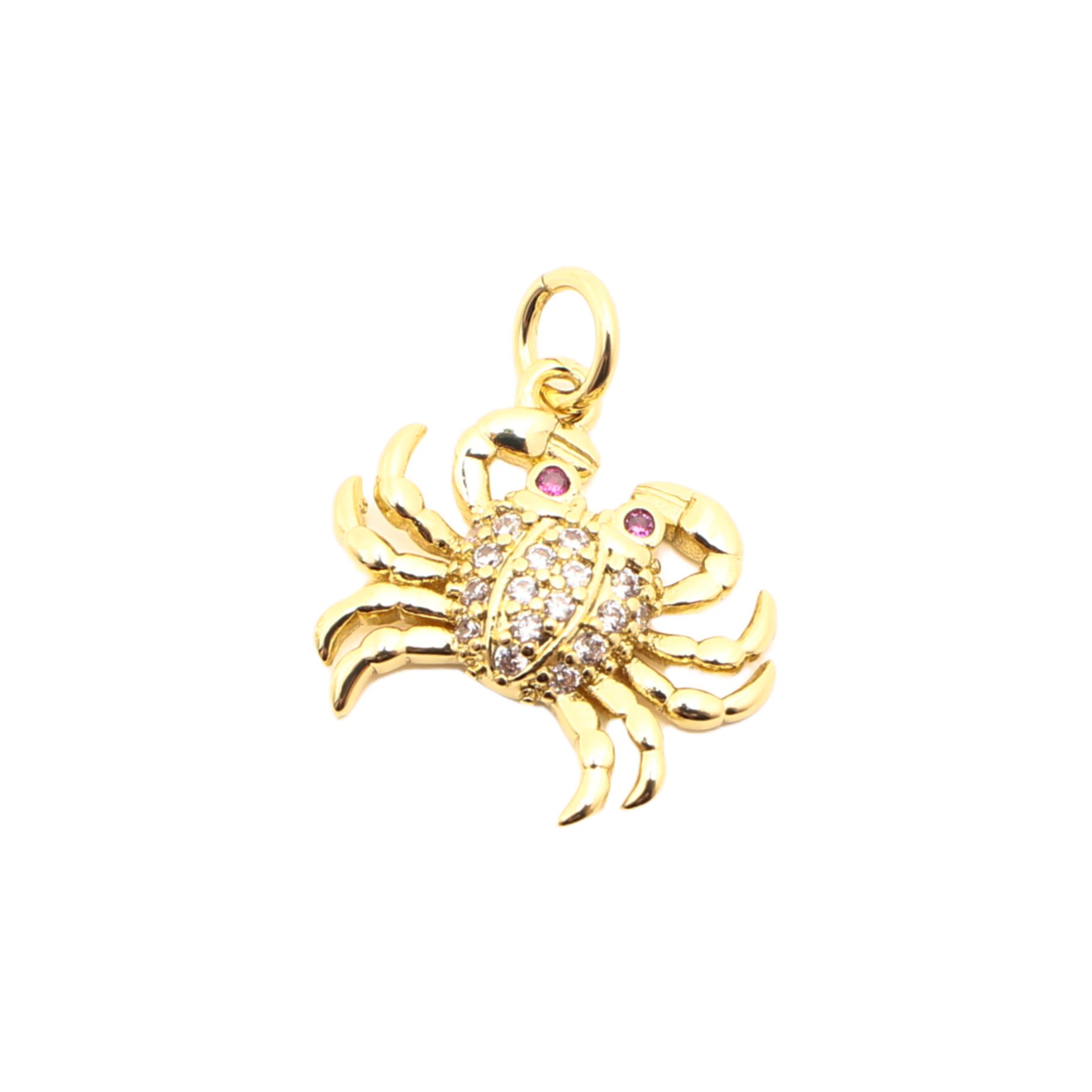 Kubické zirkonie Mikro dláždí mosaz s přívěskem, Krab, DIY & micro vydláždit kubické zirkony, zlatý, 15x16x2mm, Prodáno By PC