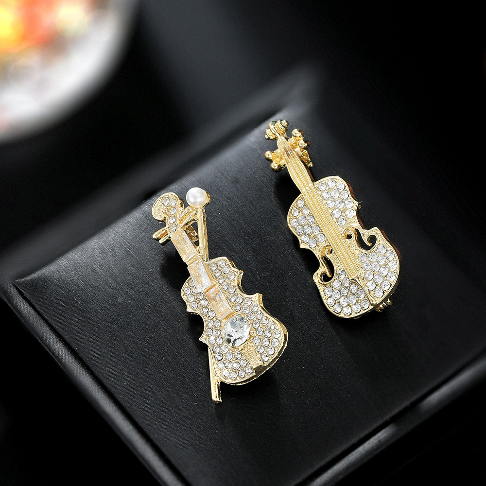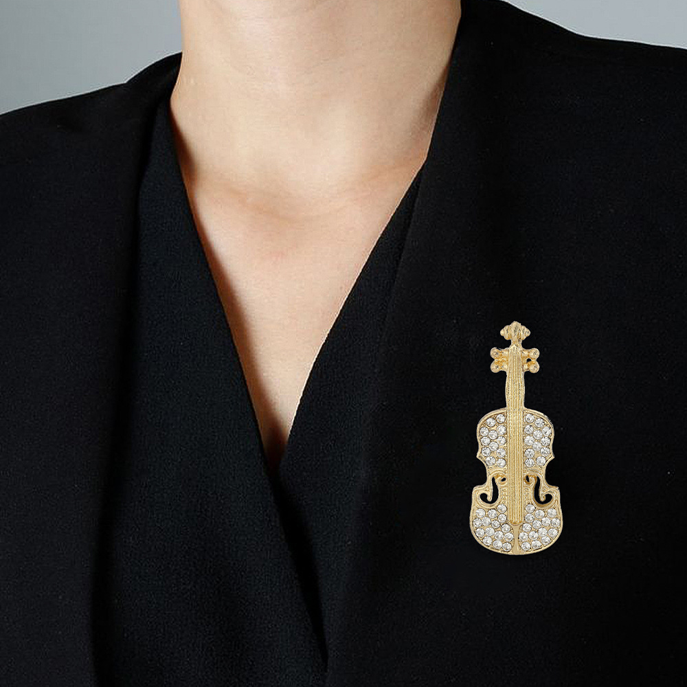 Drahokamu Brož, Zinek, Housle, á, unisex & různé styly pro výběr & s drahokamu, zlatý, Prodáno By PC
