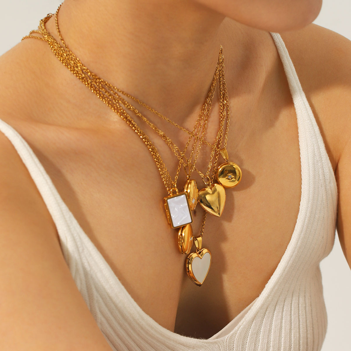 Módní Locket náhrdelník, 304 Stainless Steel, s White Shell, módní šperky & různé styly pro výběr & pro ženy, Prodáno By PC
