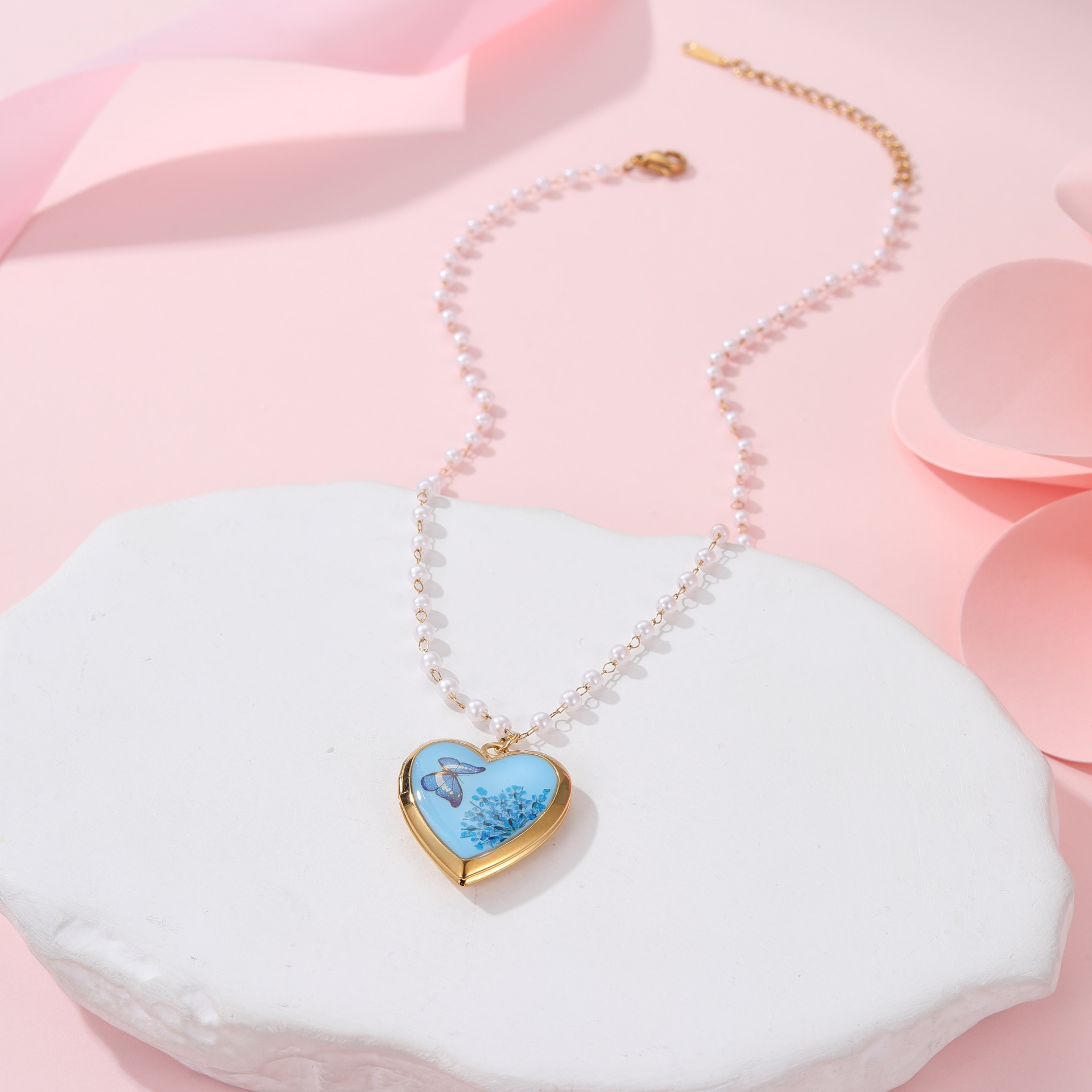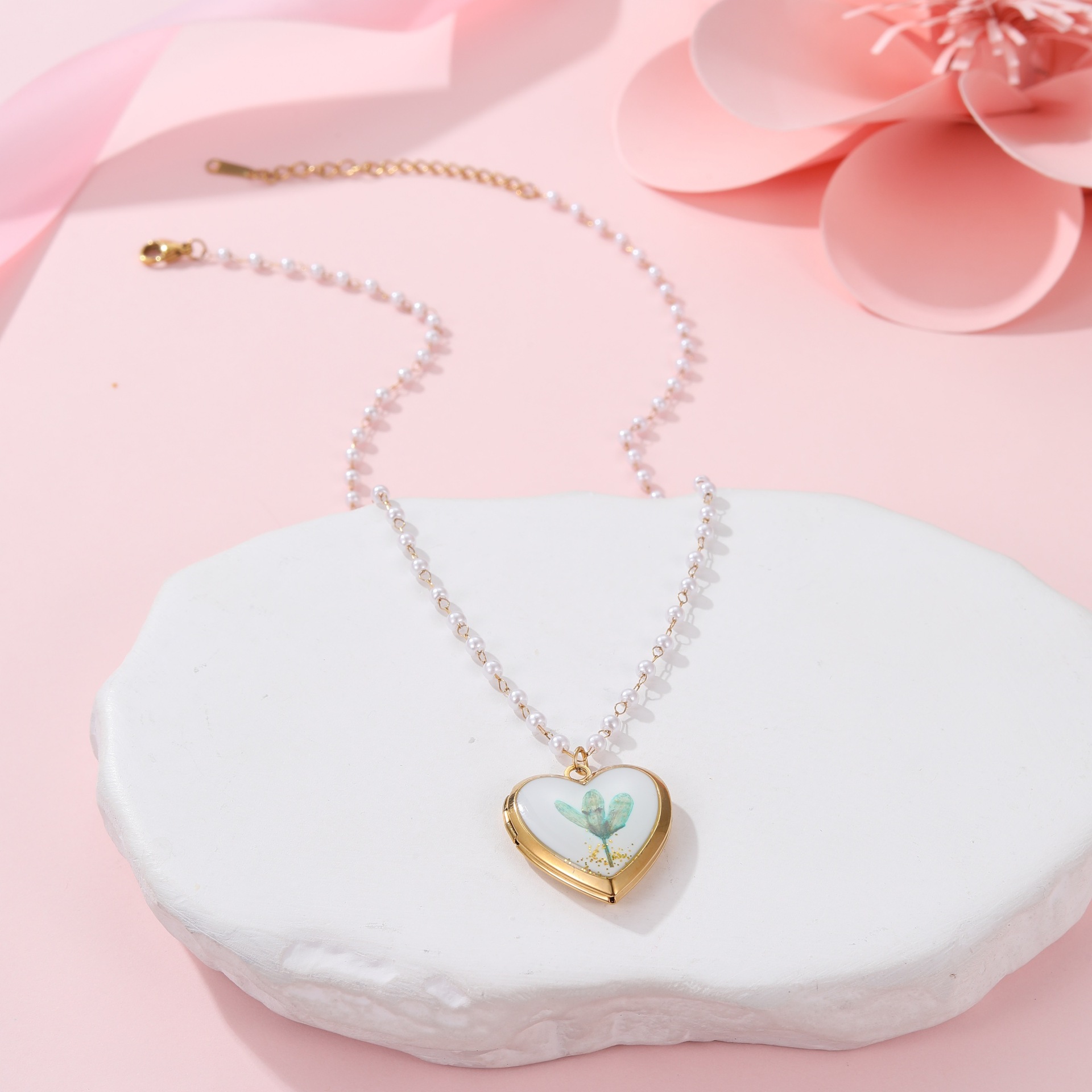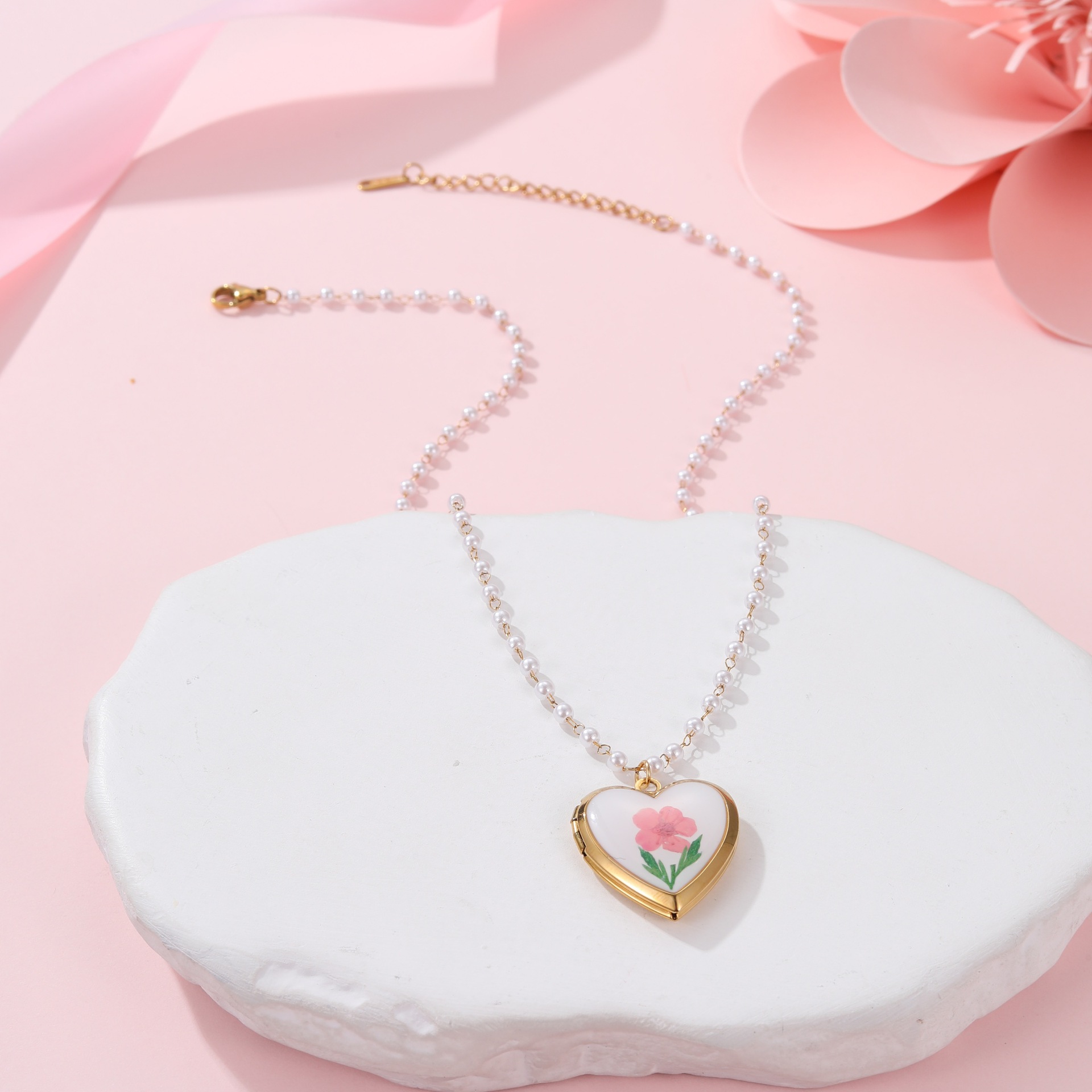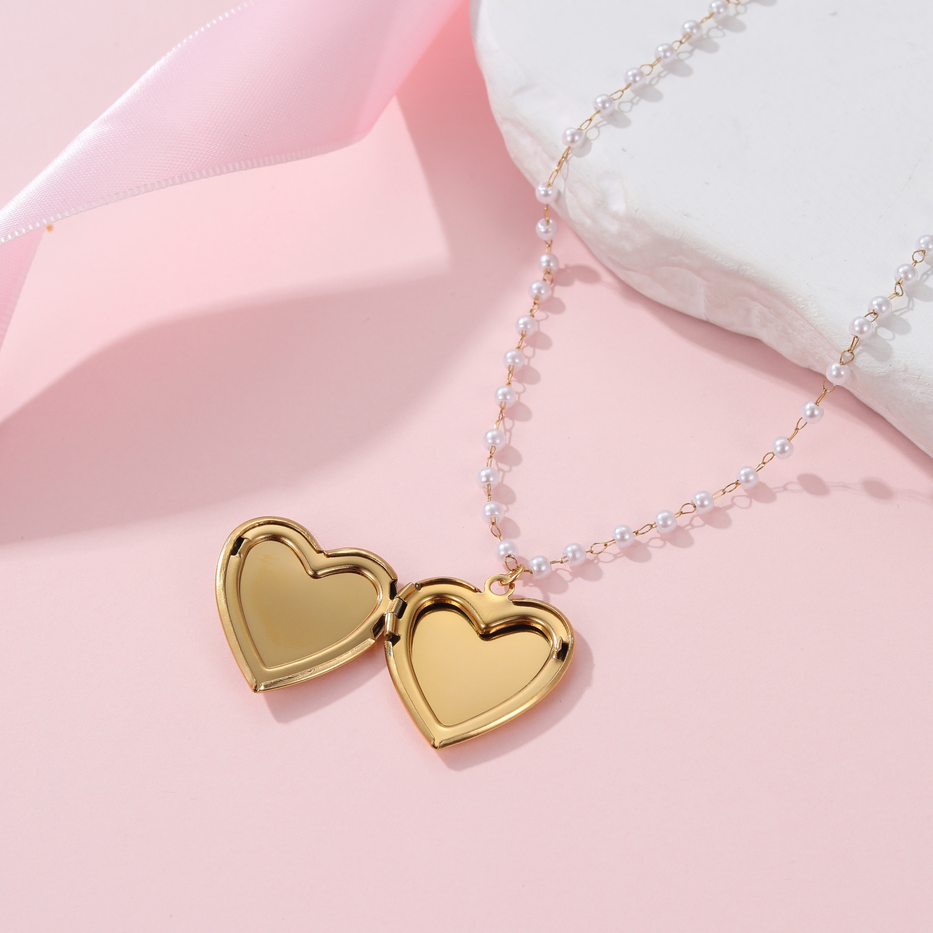 Módní Locket náhrdelník, 304 Stainless Steel, s Plastové Pearl, může otevřít a dát do něčeho & různé designy pro výběr & pro ženy & smalt, Prodáno By PC
